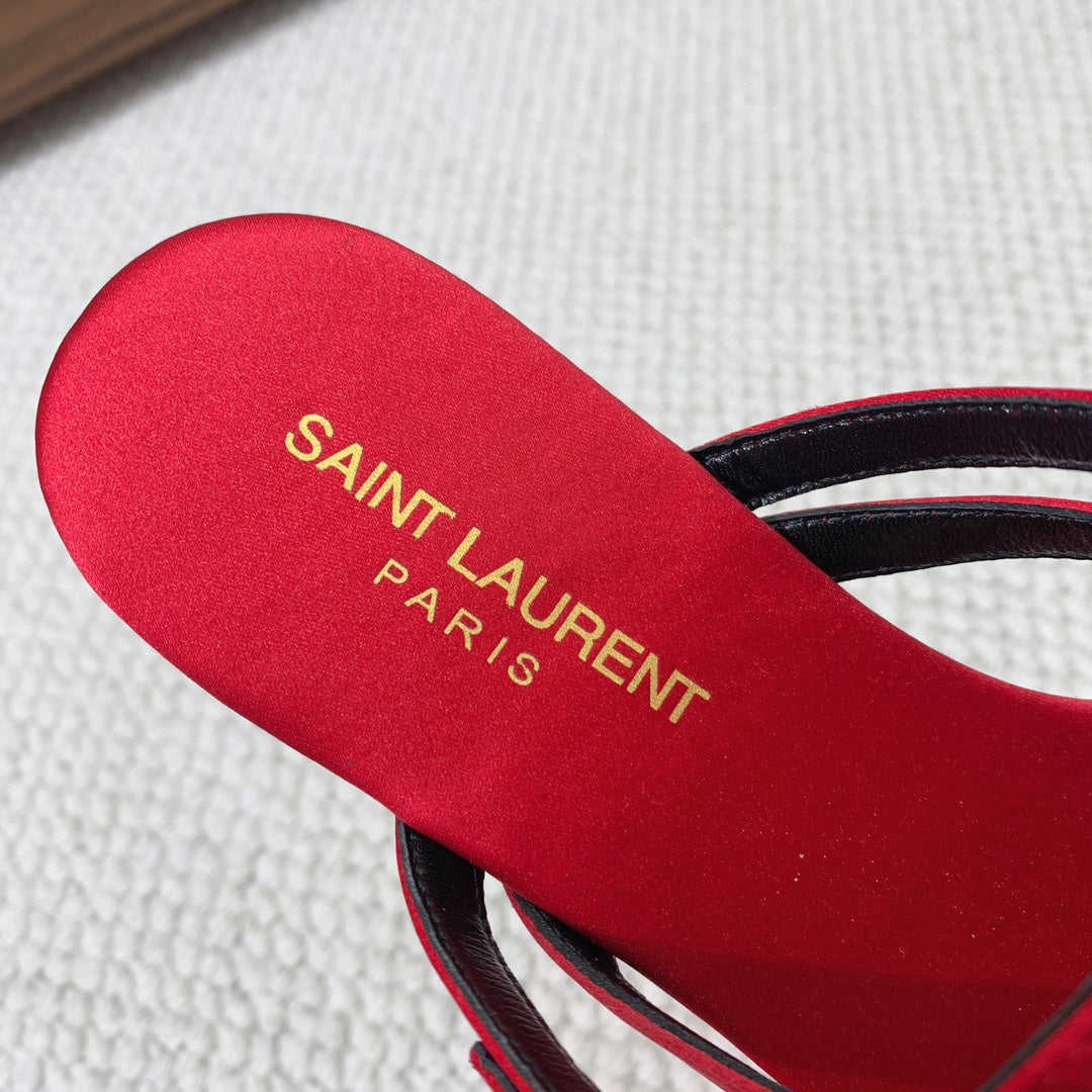 SL CRYSTAL BUCKLE THONG SANDAL RED SATIN