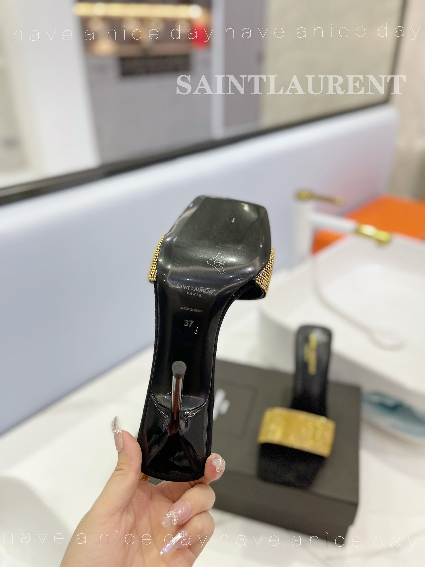 SL LUCKY GOLD CRYSTAL HIGH HEELS BLACK CALFSKIN