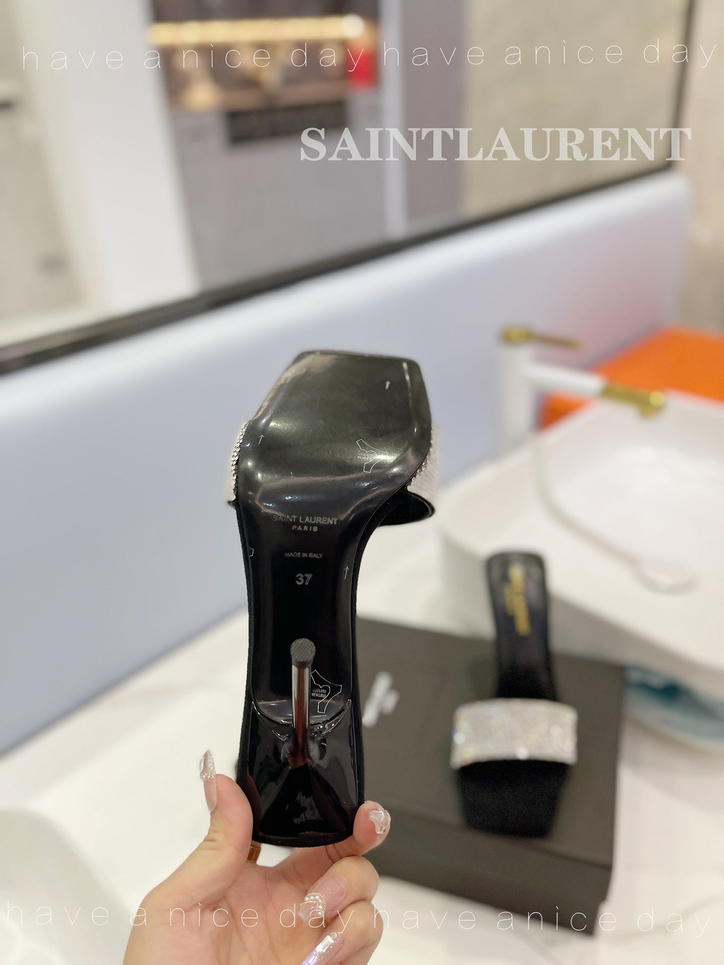 SL LUCKY WHITE CRYSTAL HIGH HEELS BLACK CALFSKIN