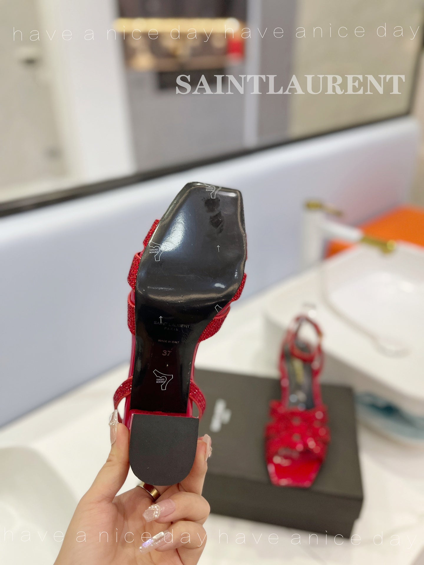 SL TRIBUTE CRYSTAL SANDALS GLOSSY RED CALFSKIN