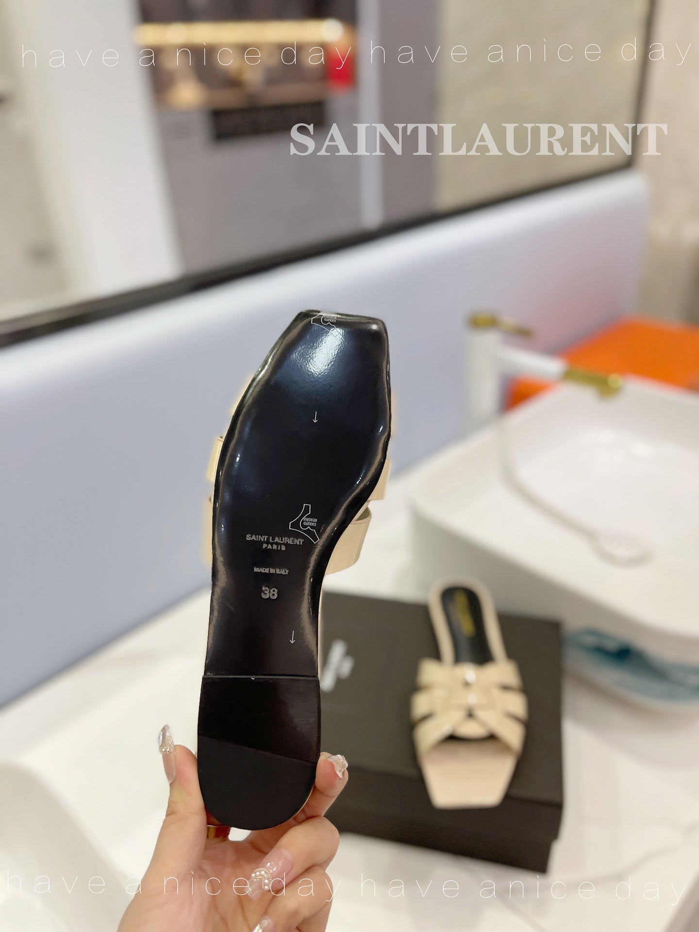 SL TRIBUTE SLIPPERS GLOSSY PASTEL YELLOW CALFSKIN