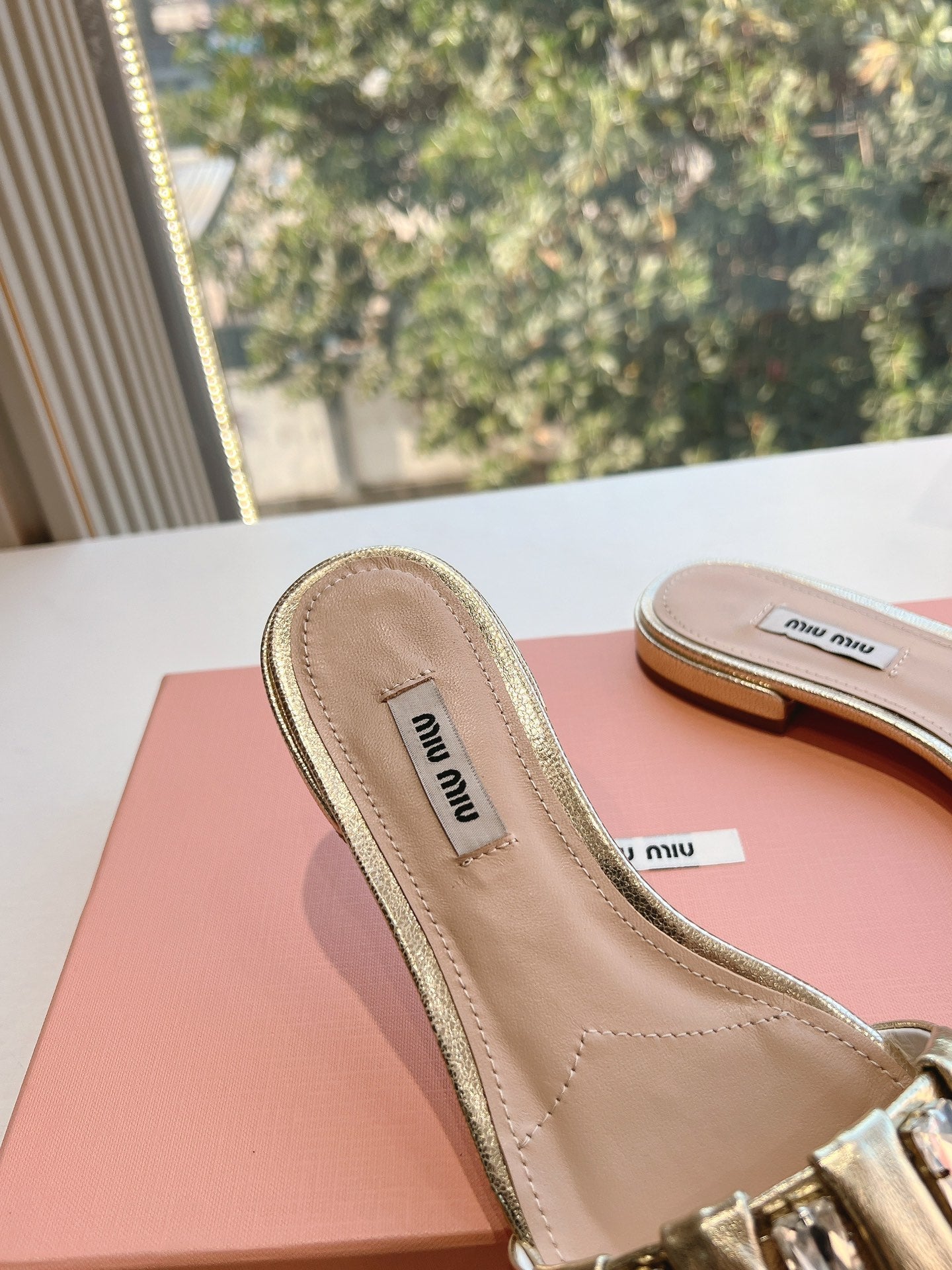 SLIDE SANDALS ATTACHED DIAMOND IN GOLD METALLIC LAMBSKIN