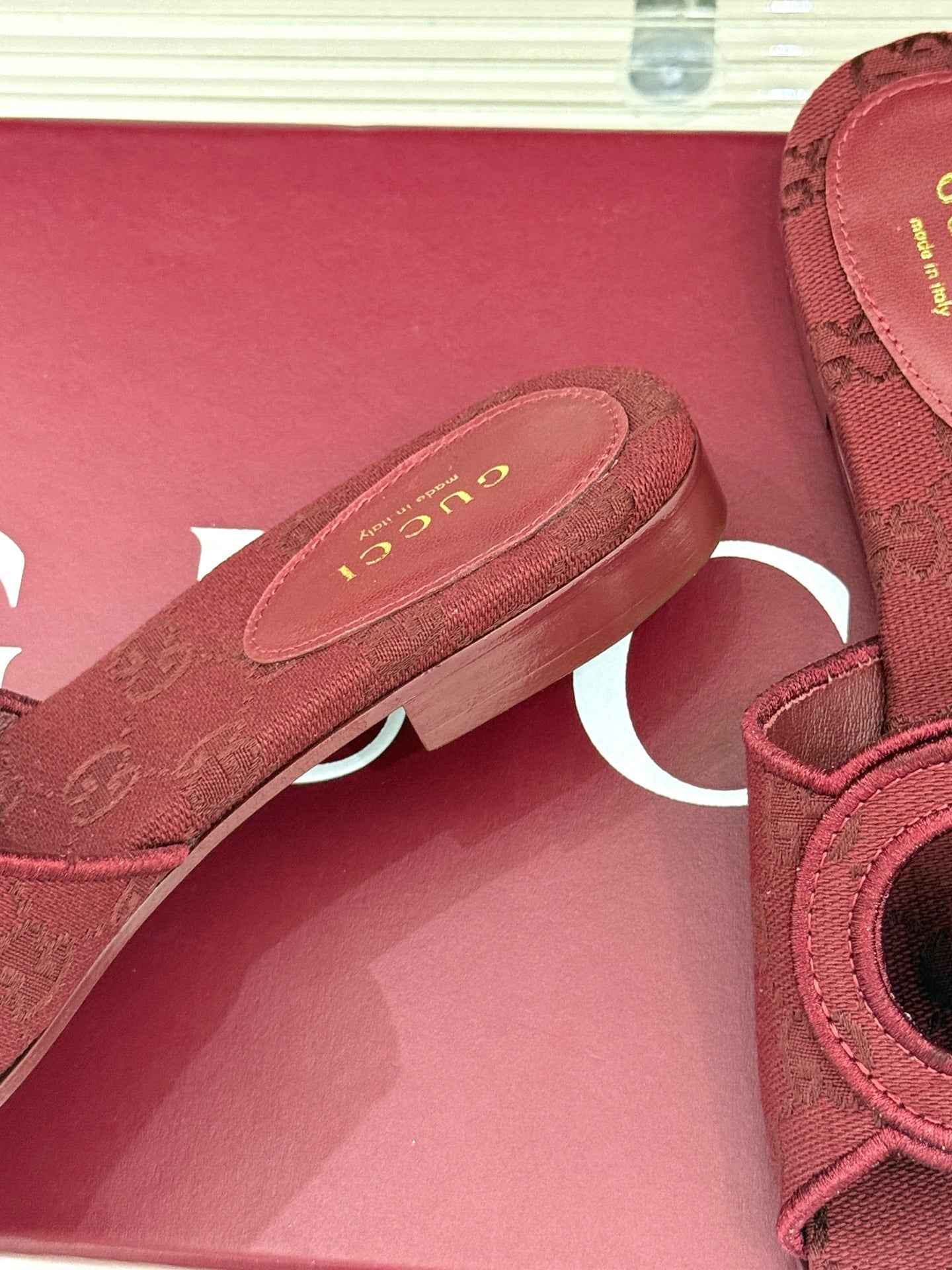 SLIDE SANDALS IN RED FABRIC EMBOSSED LOGO STYLE 4