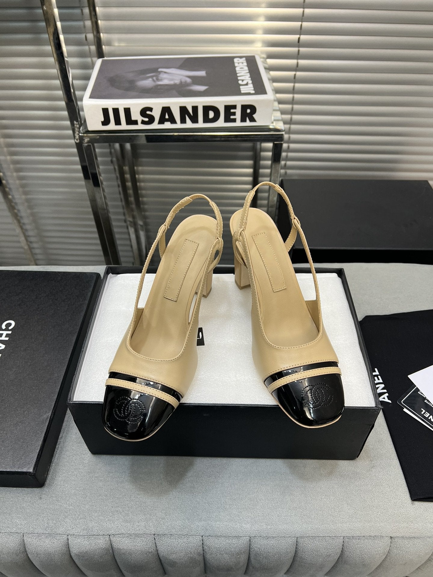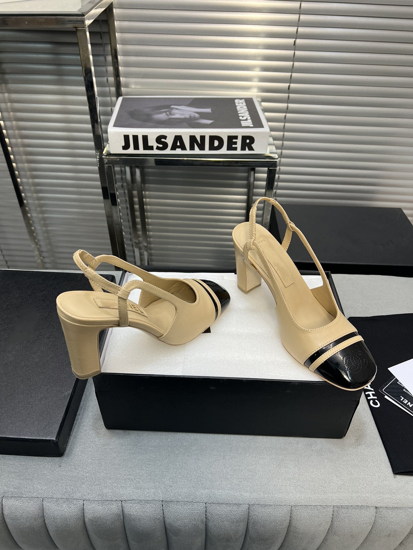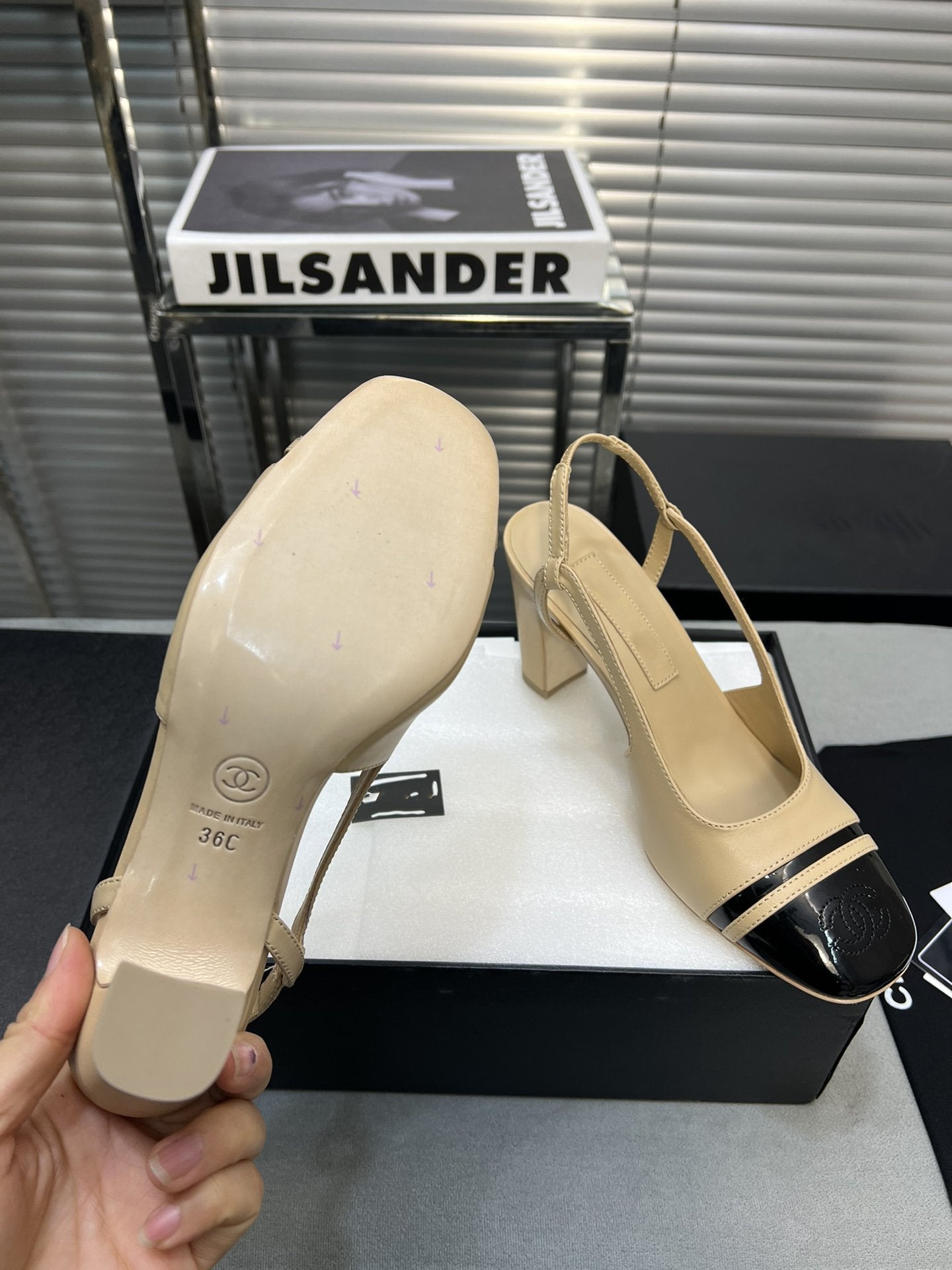 slingback light beige suede silver metalic lambskin square toe 9.5