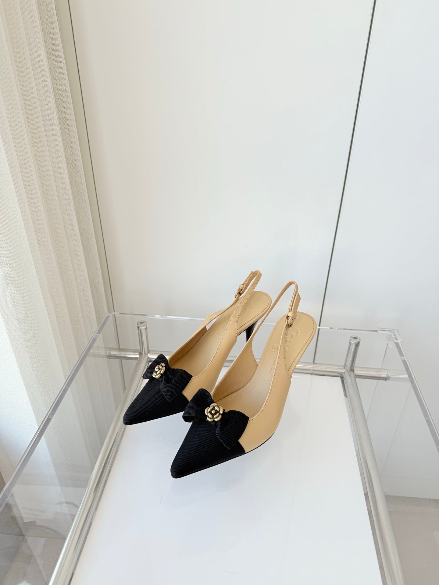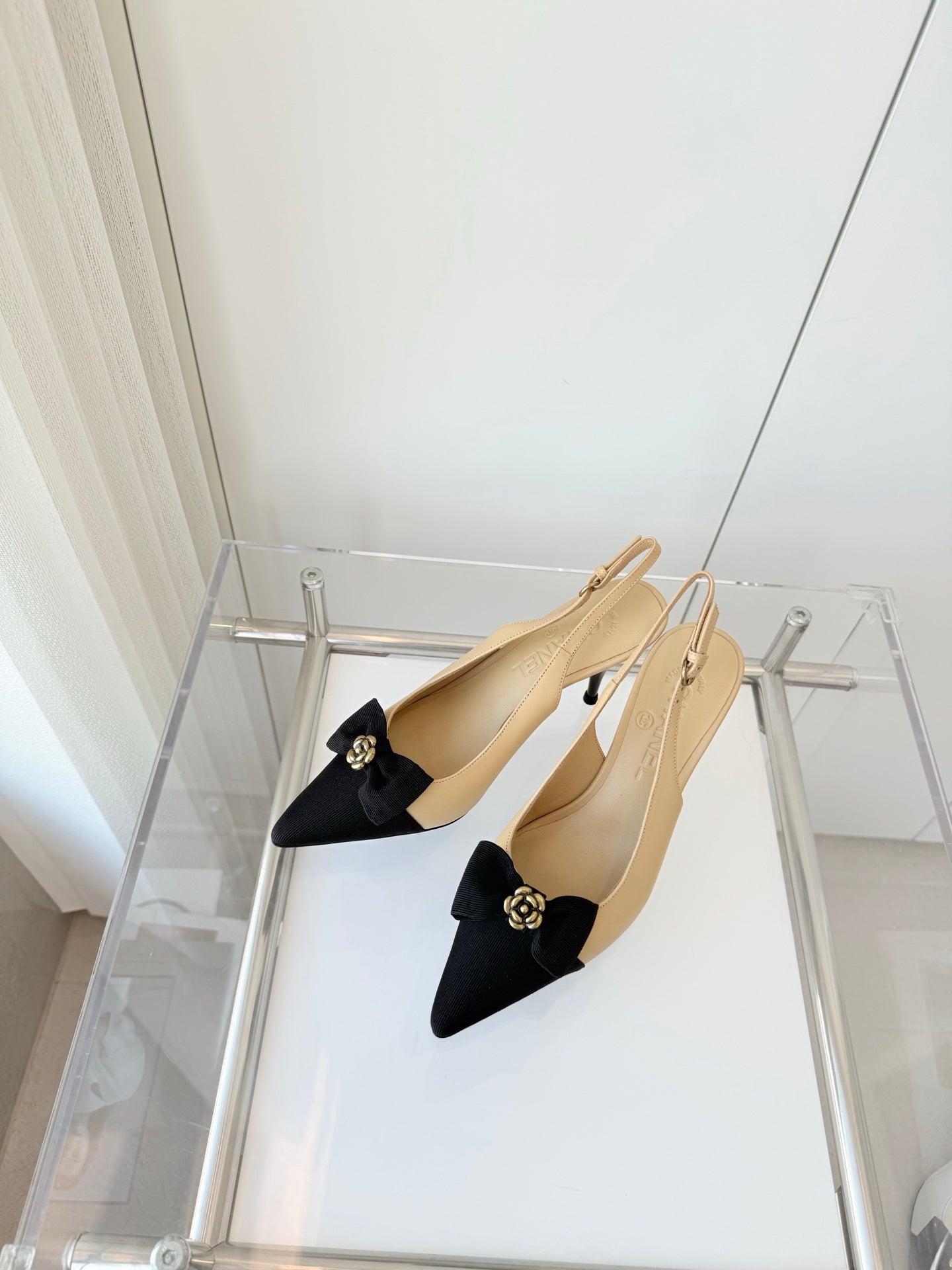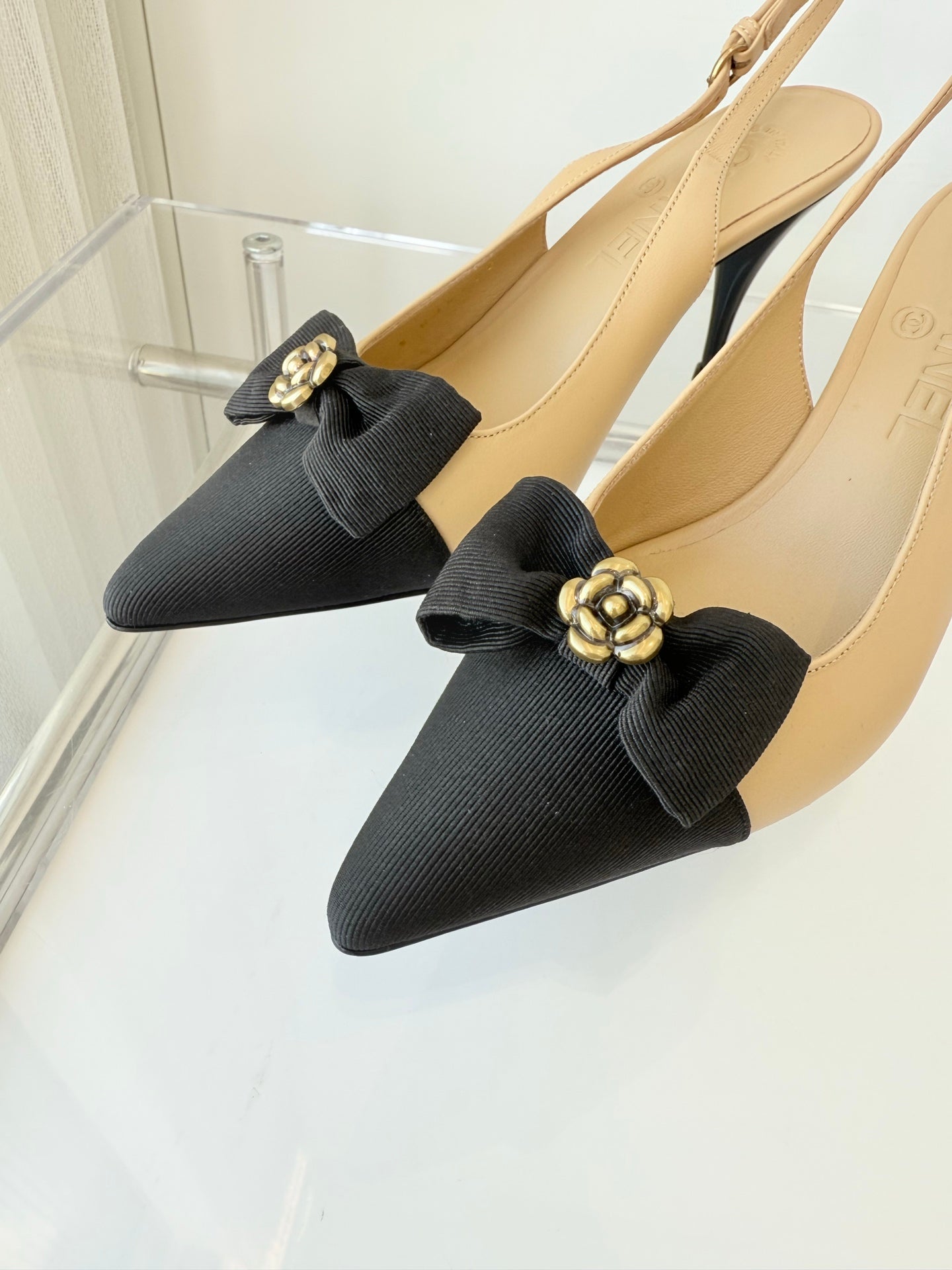 SLINGBACKS 80 MM IN BEIGE CALFSKIN AND BLACK CANVAS