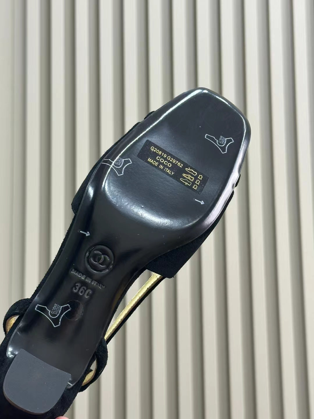 SLINGBACKS IN BLACK SUEDE AND GOLDEN LAMBSKIN