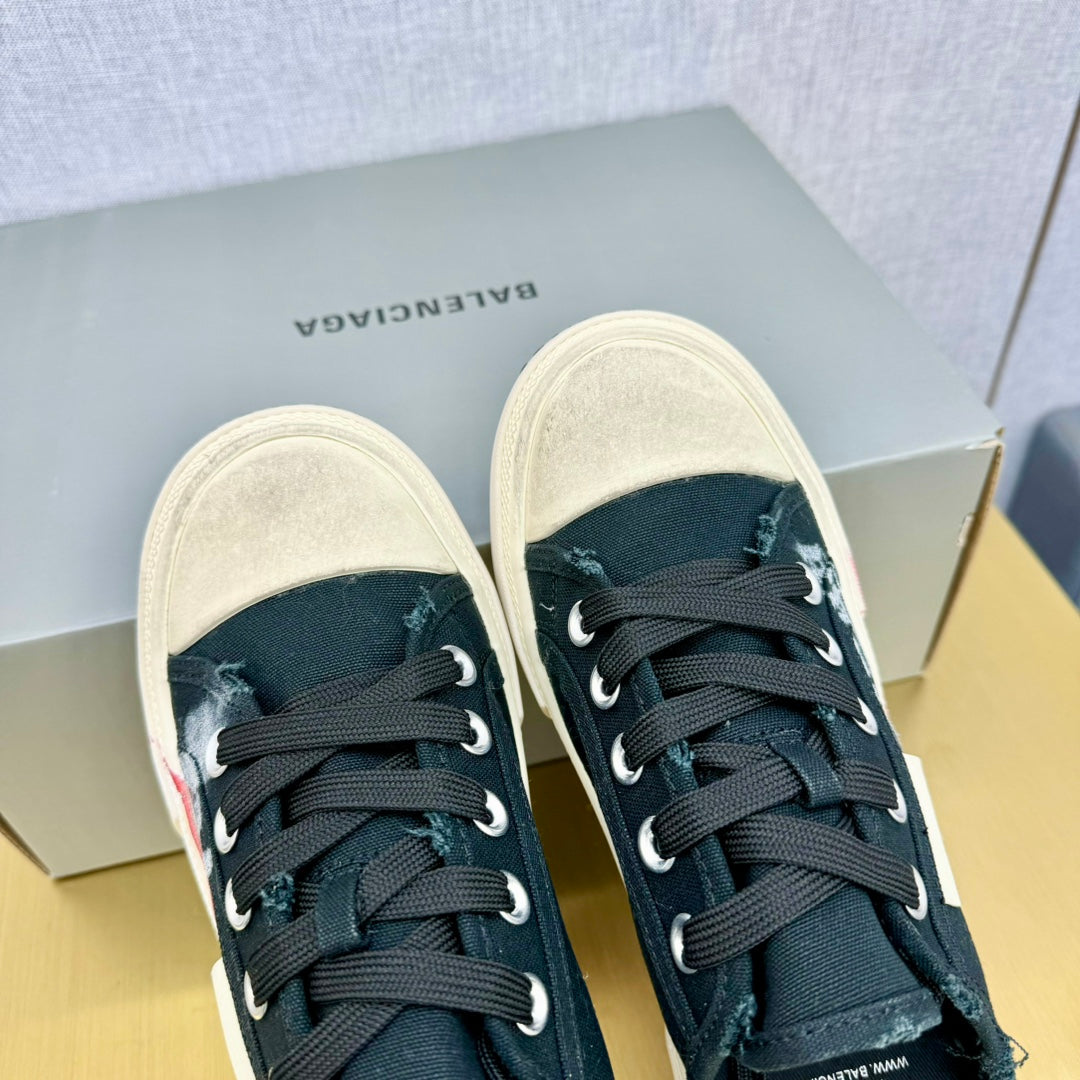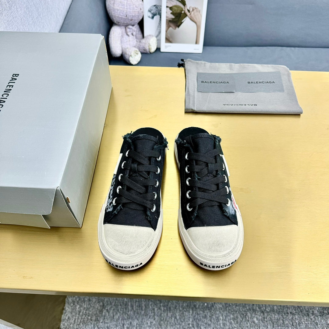 SNEAKER MULES IN BLACK CANVAS GRAFFITI LOGO