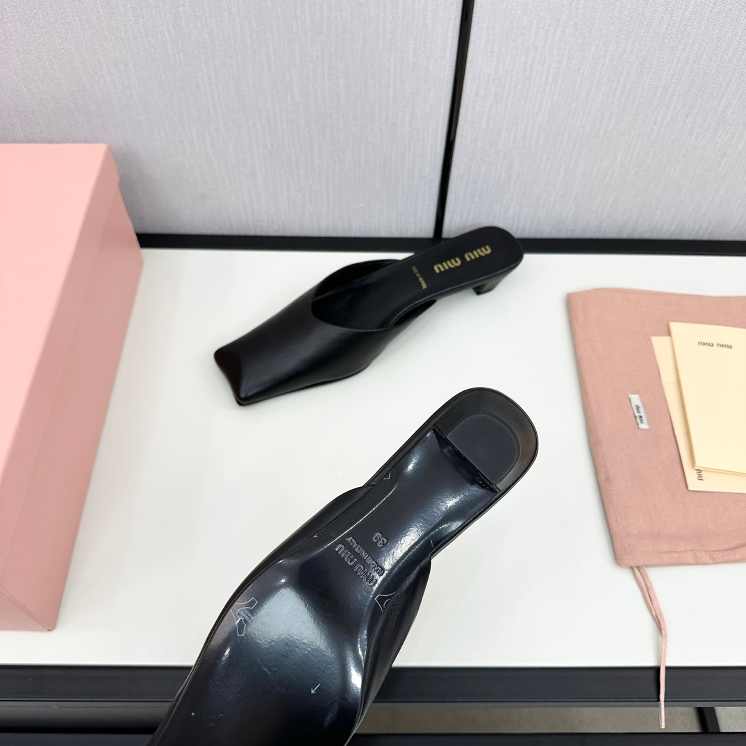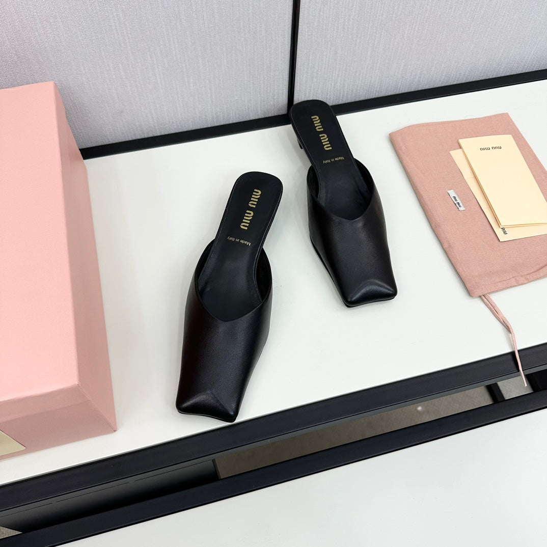 SQUARE TOE MULES BLACK SHEEPSKIN