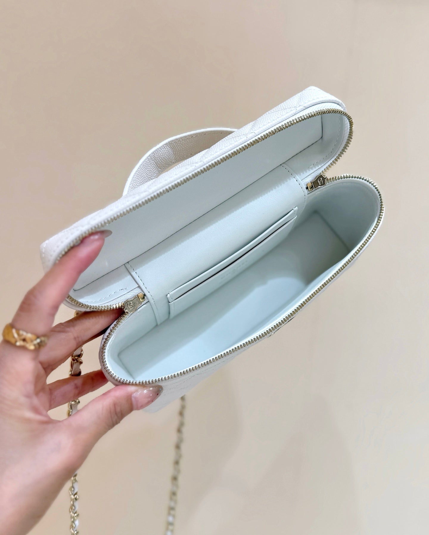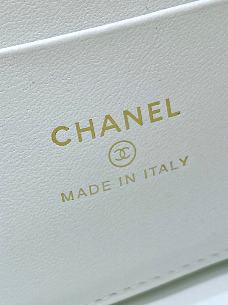 STRASS VANITY QUILTED CASE 19 IN WHITE CALFSKIN WITH GOLD METALLIC