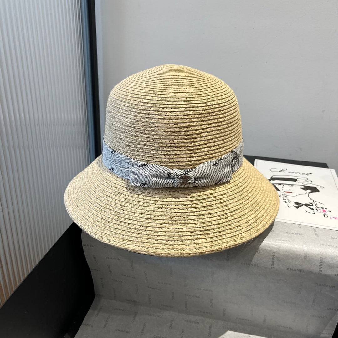 STRAW BUCKET HAT IN BEIGE WITH RIBBON BOW 673979