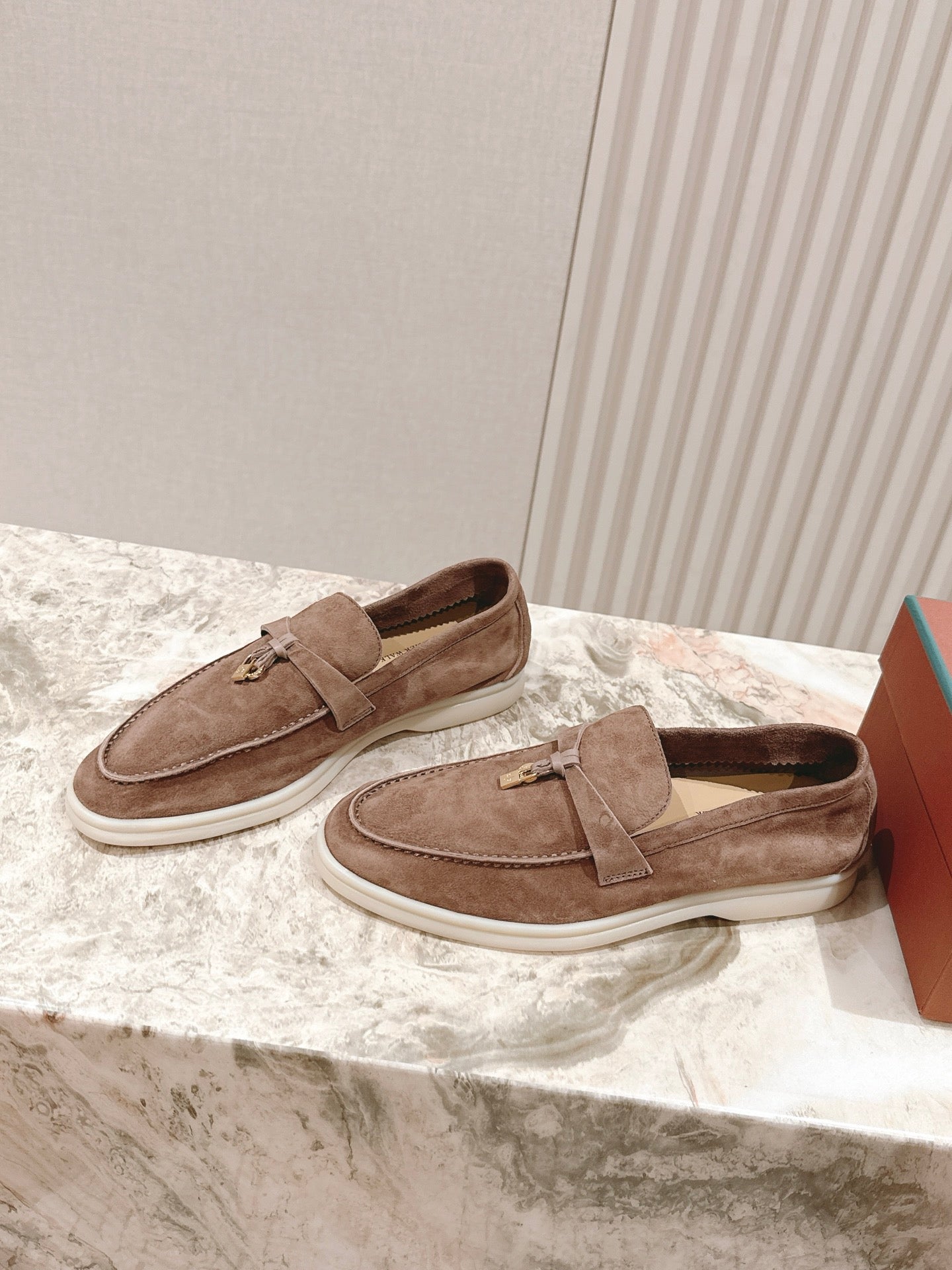 SUMMER WALK LOAFERS BROWN SUEDE WITH GOLD PADLOCK CHARM