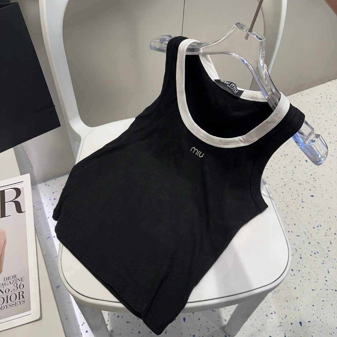 TANK TOP 615176 IN BLACK COTTON RIBBED WHITE TRIM