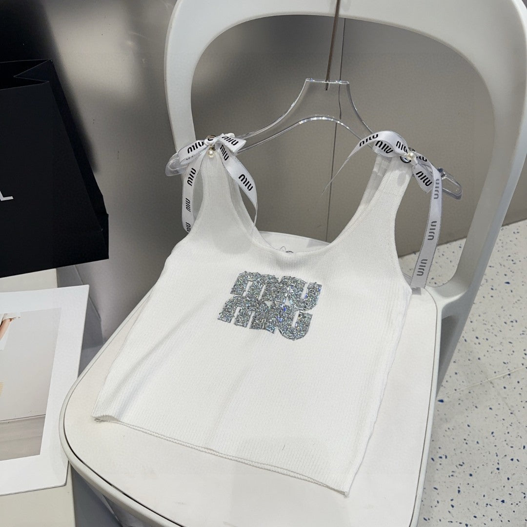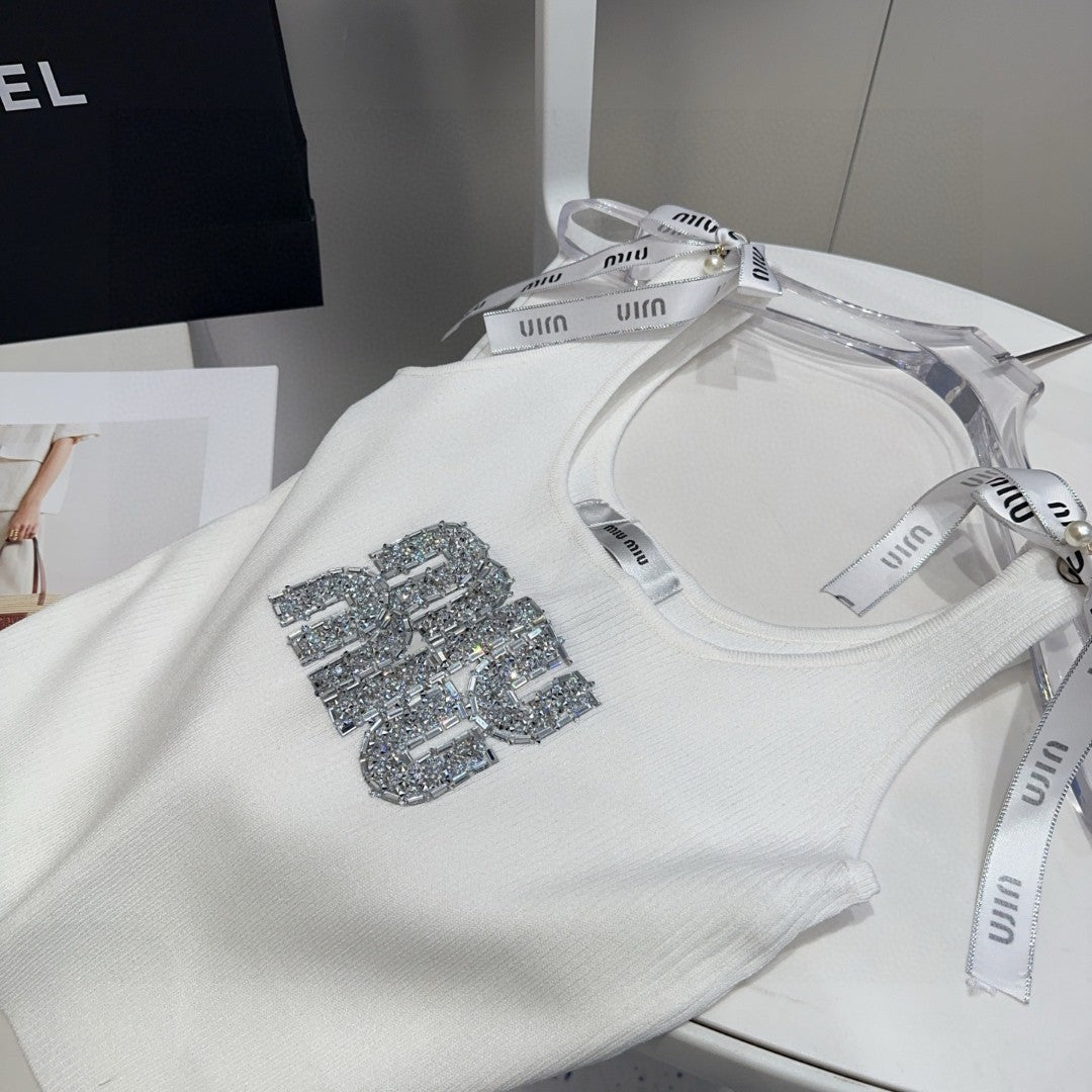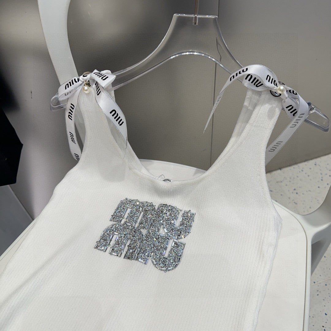 TANK TOP 622143 IN WHITE COTTON RIBBED EMBOSSED CRYSTAL