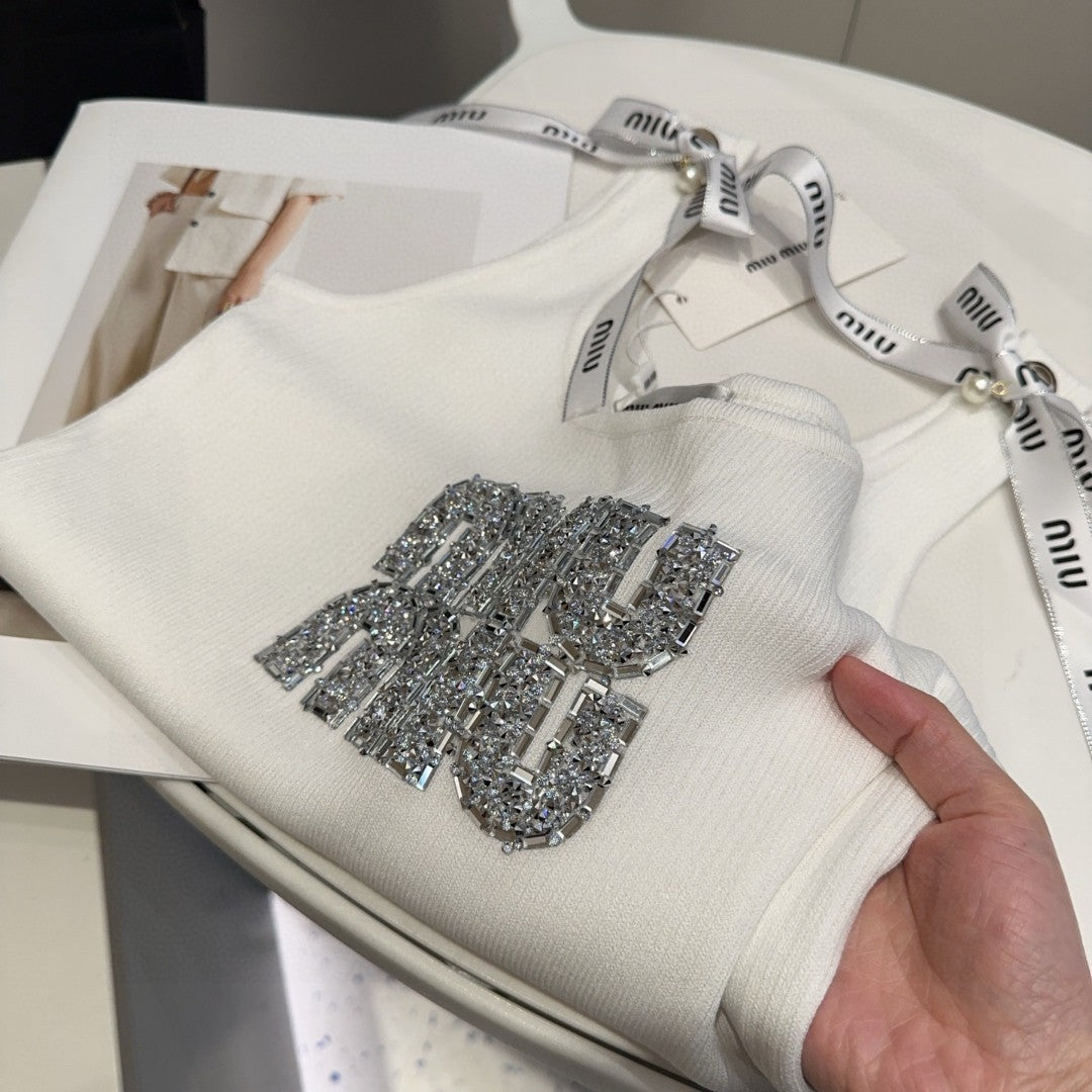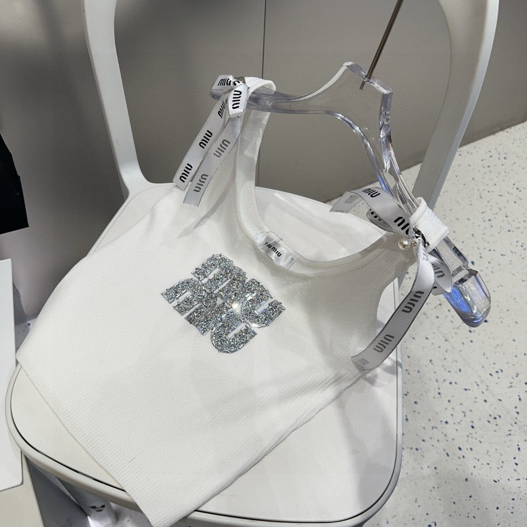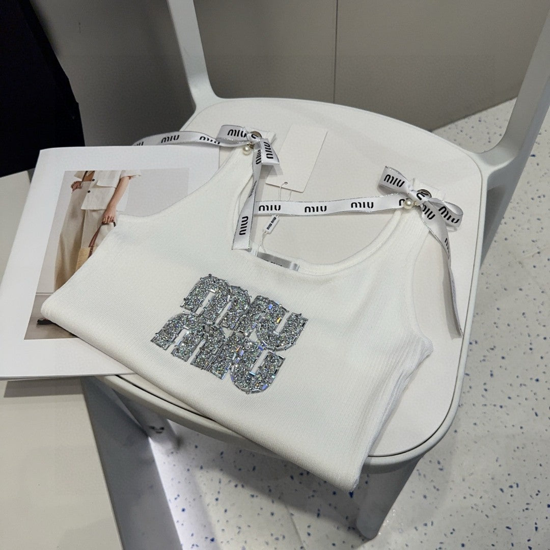 TANK TOP 622143 IN WHITE COTTON RIBBED EMBOSSED CRYSTAL