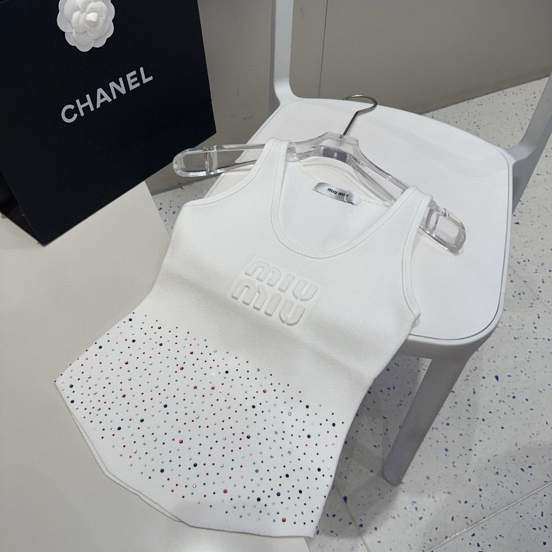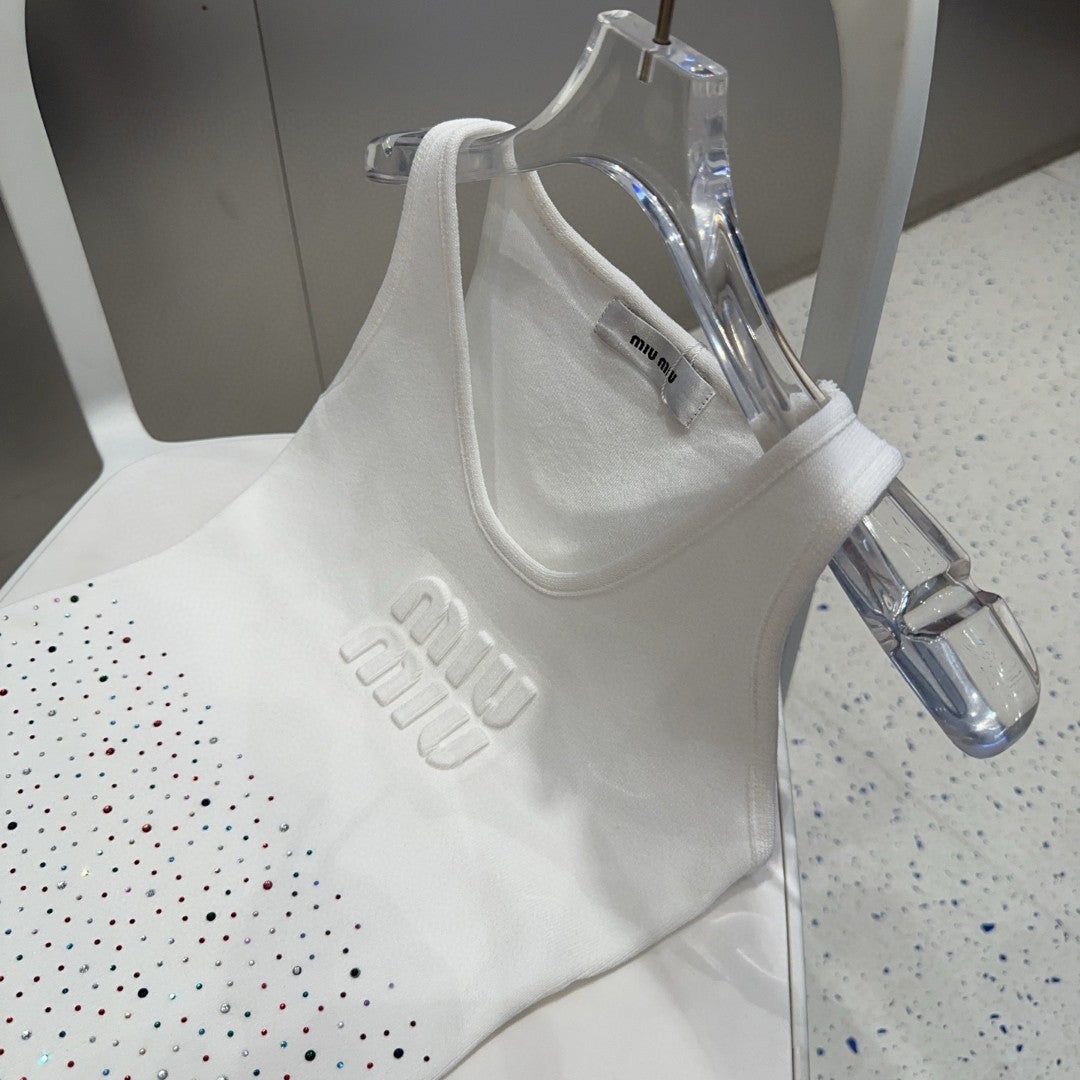 TANK TOP 640624 IN WHITE COTTON MUTILCOLOR CRYSTAL