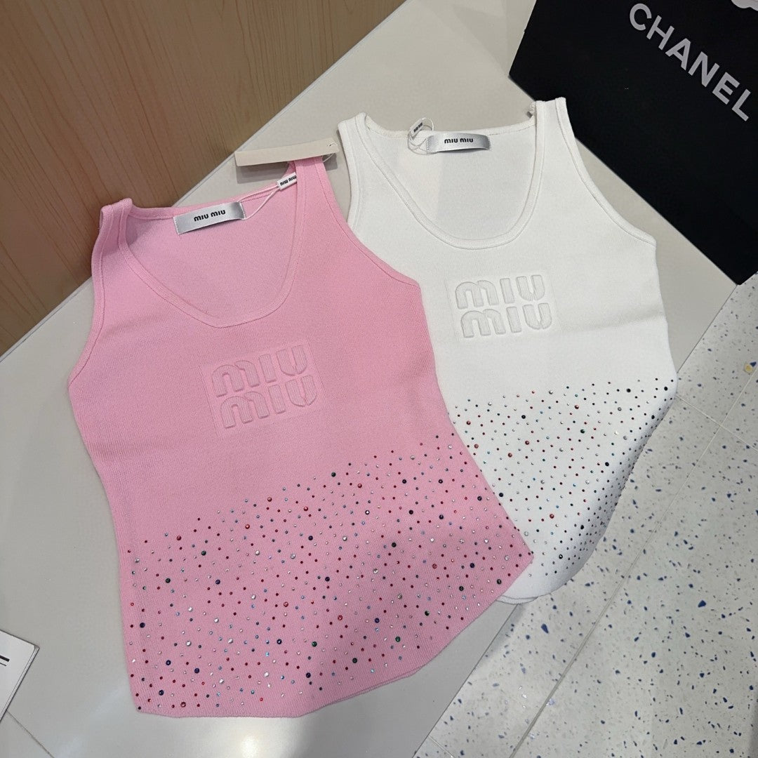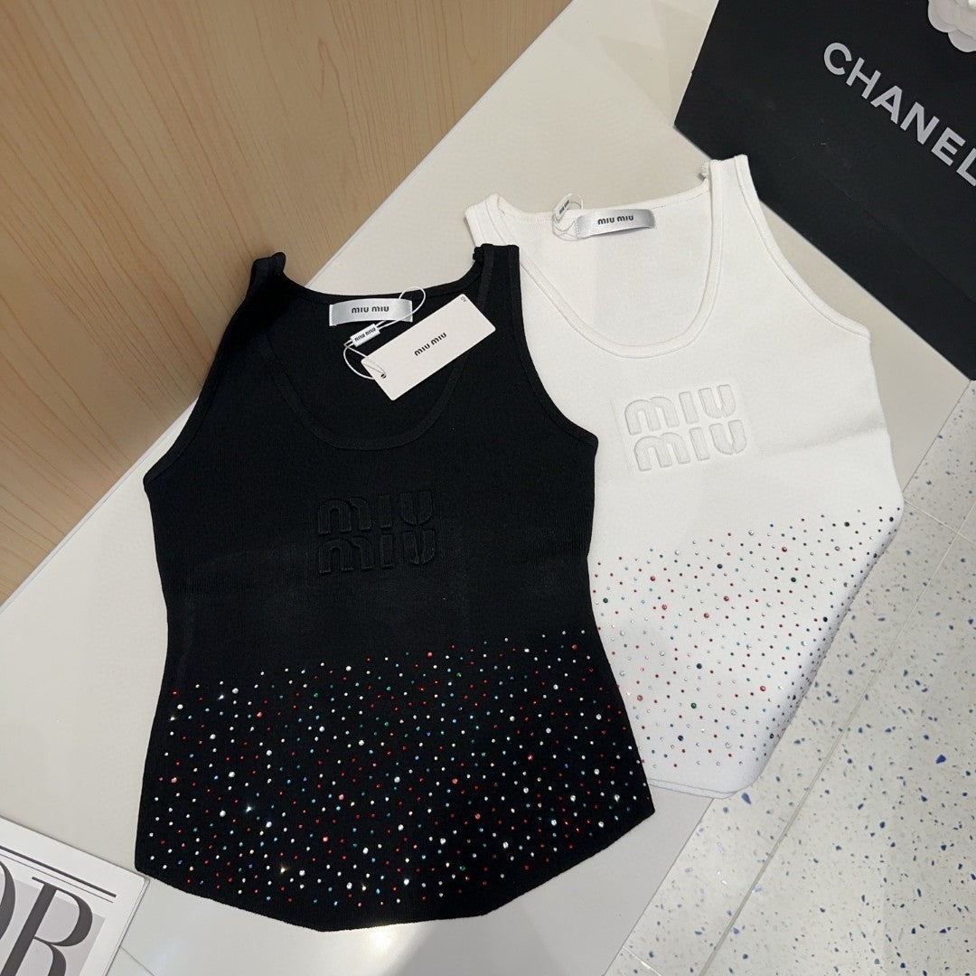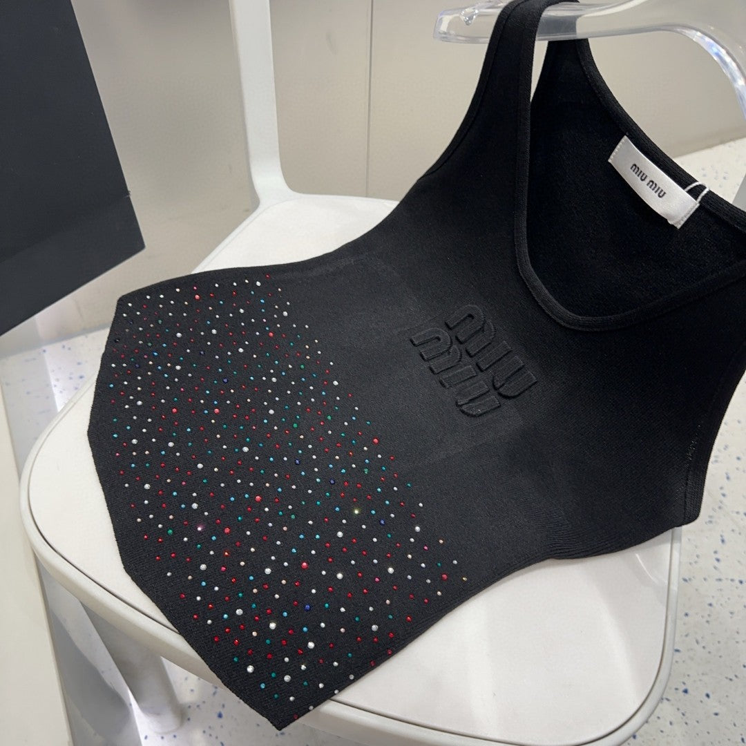 TANK TOP 640626 IN BLACK COTTON MUTILCOLOR CRYSTAL