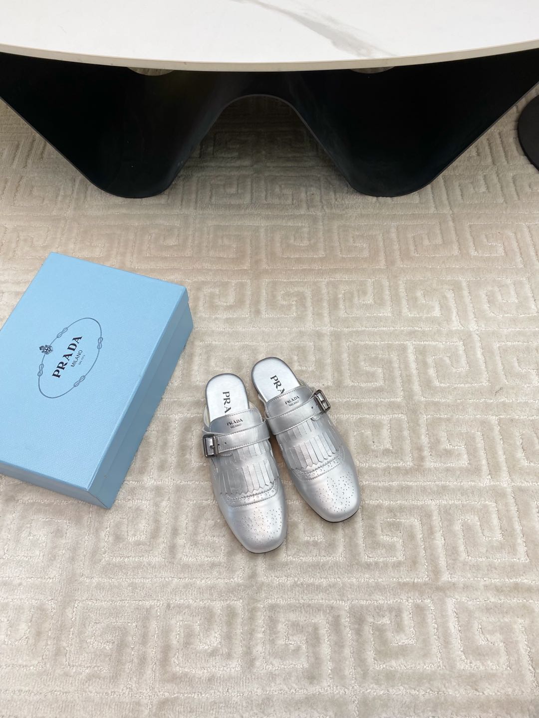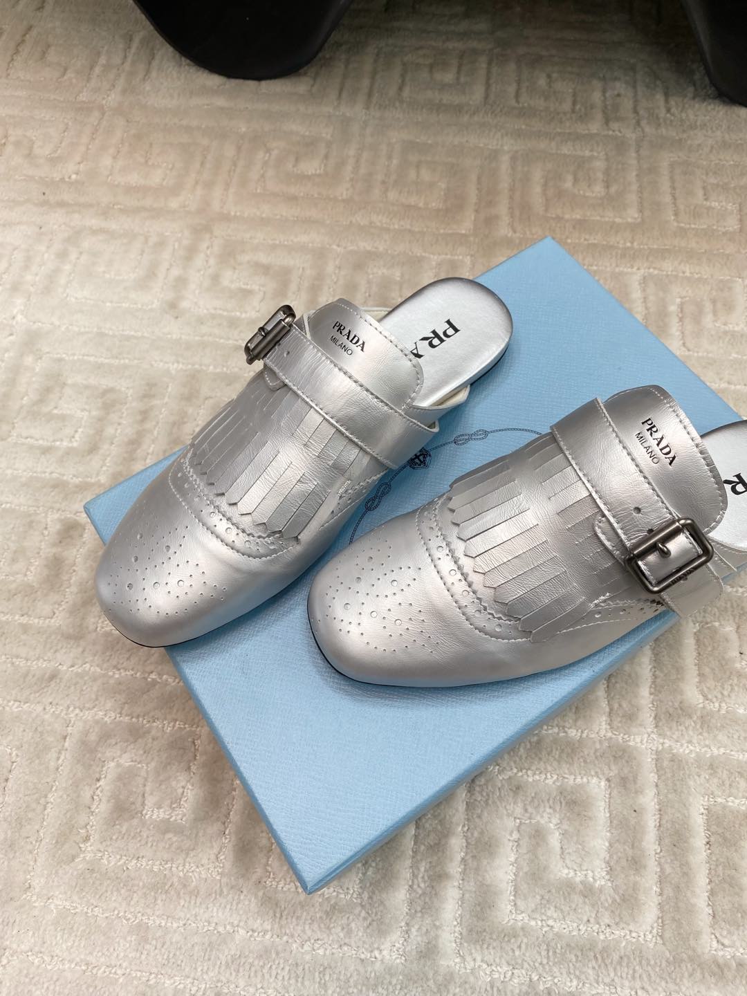 TASSEL MULES IN SILVER METALLIC LAMBSKIN