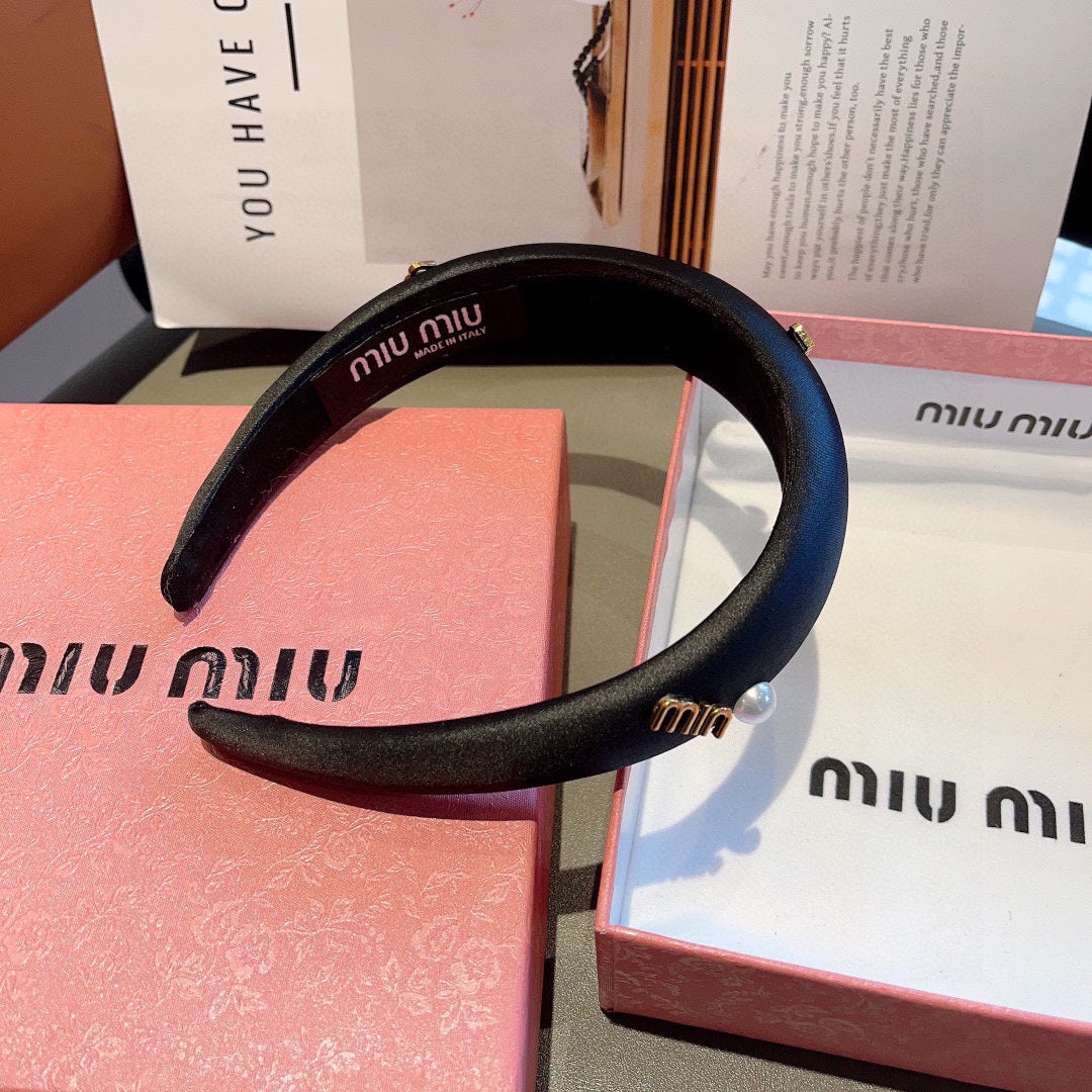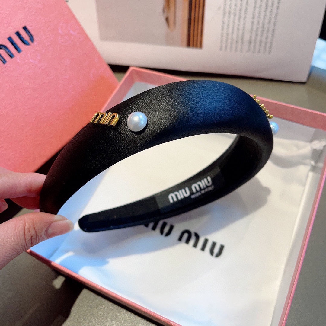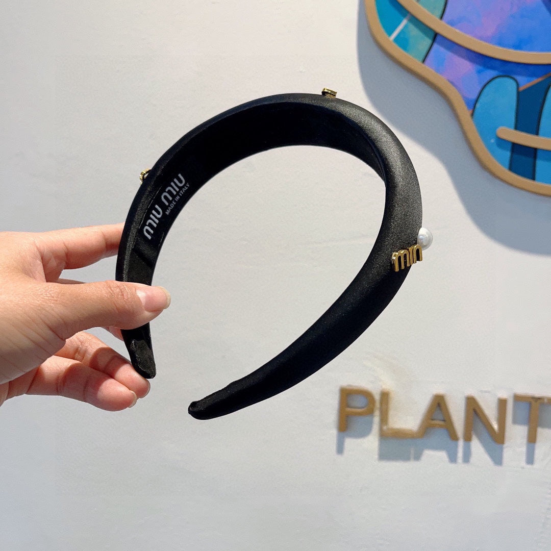 THICK HEADBAND ATTACHED PEARL IN BLACK SILK 429311