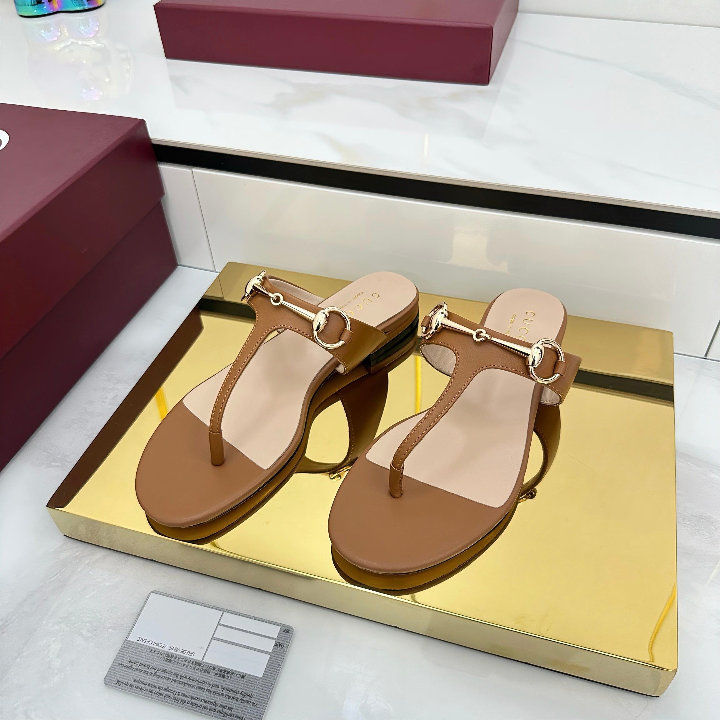 THONG SANDALS IN BROWN LAMBSKIN WITH GOLD HARDWARE