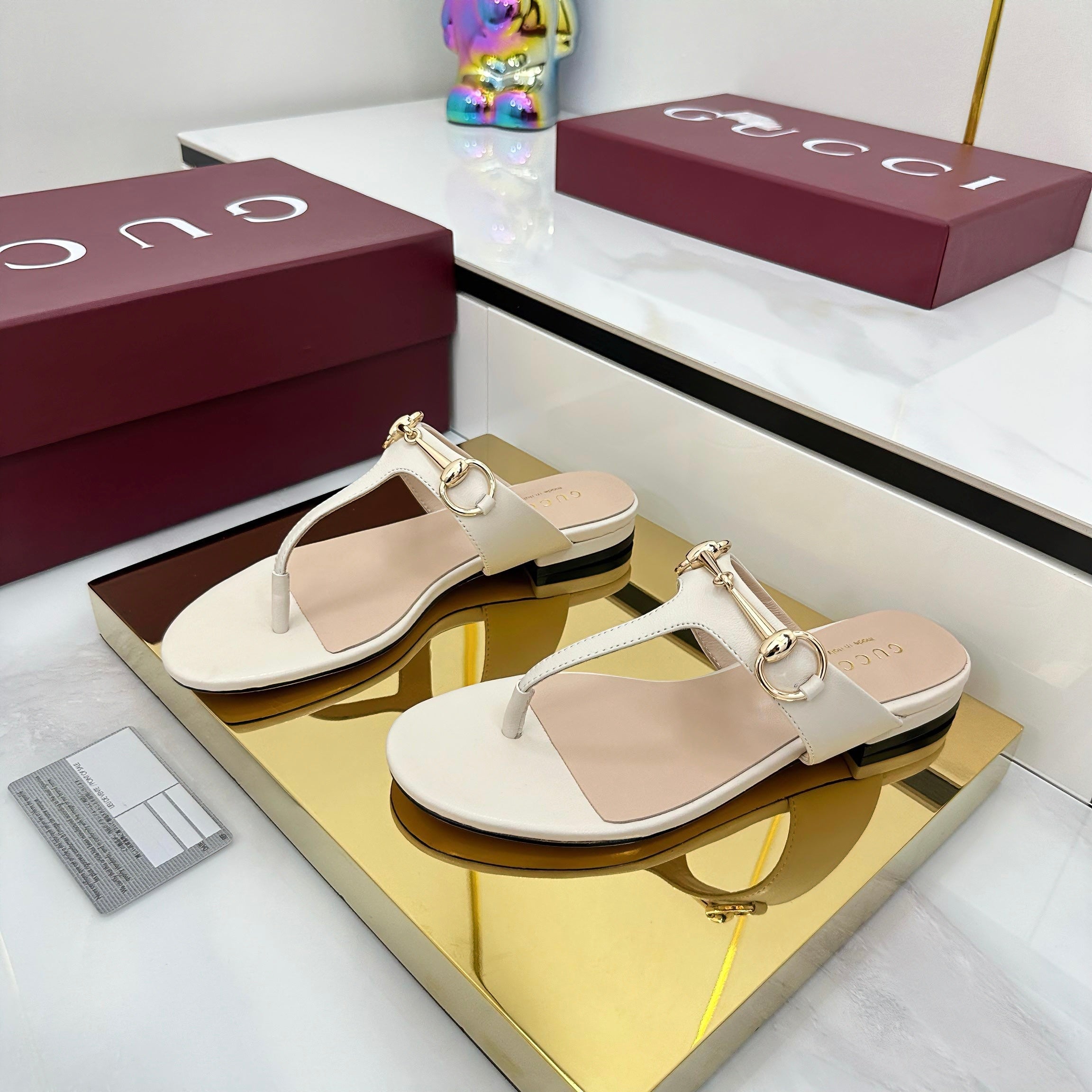THONG SANDALS IN CREAM WHITE LAMBSKIN WITH GOLD HARDWARE