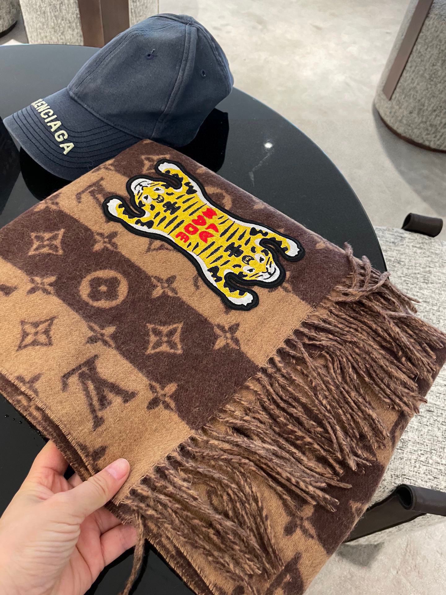TIGER PATTERN SCARF 205 CM IN CHOCOLATE BROWN CASHMERE 390874