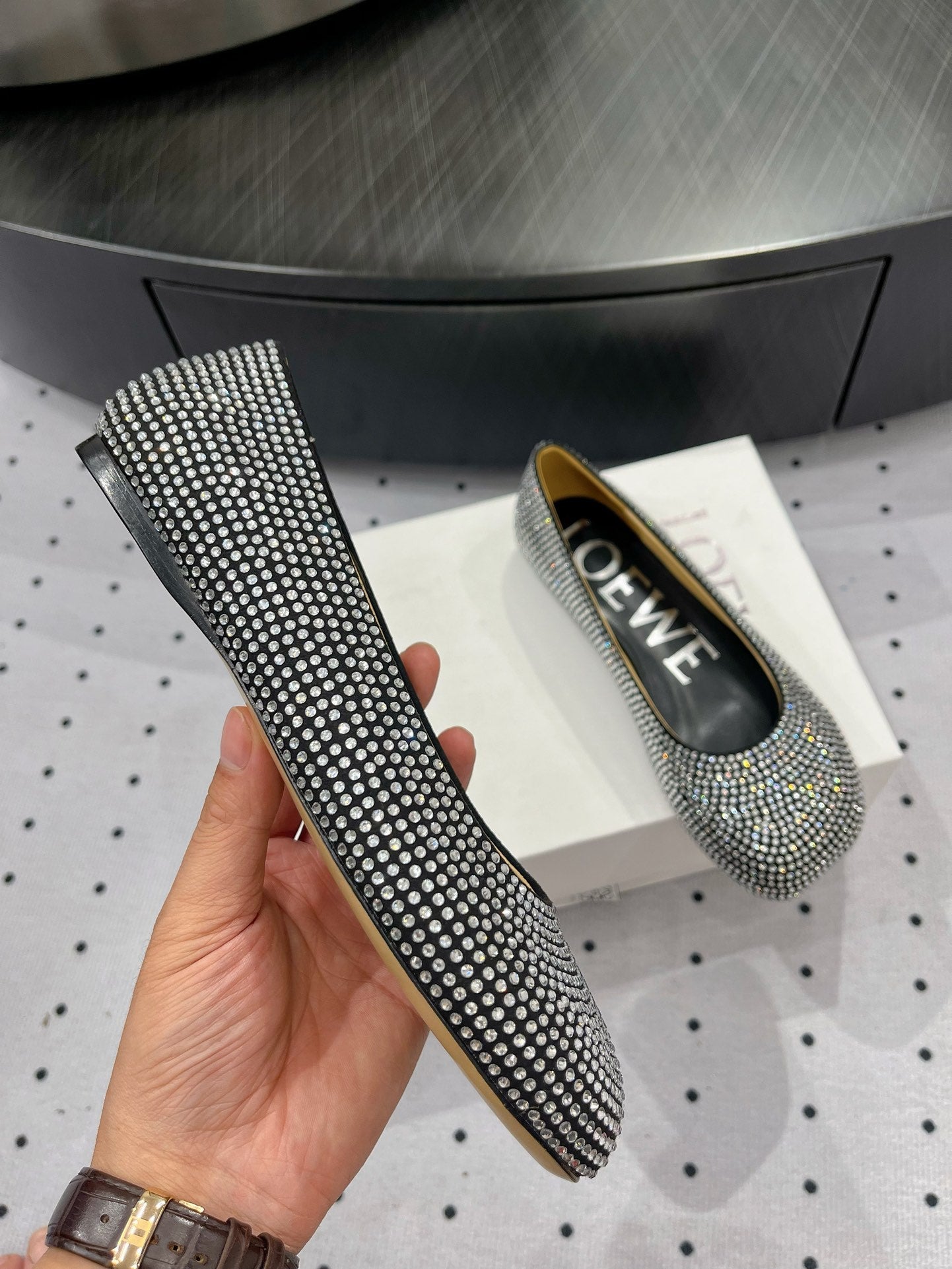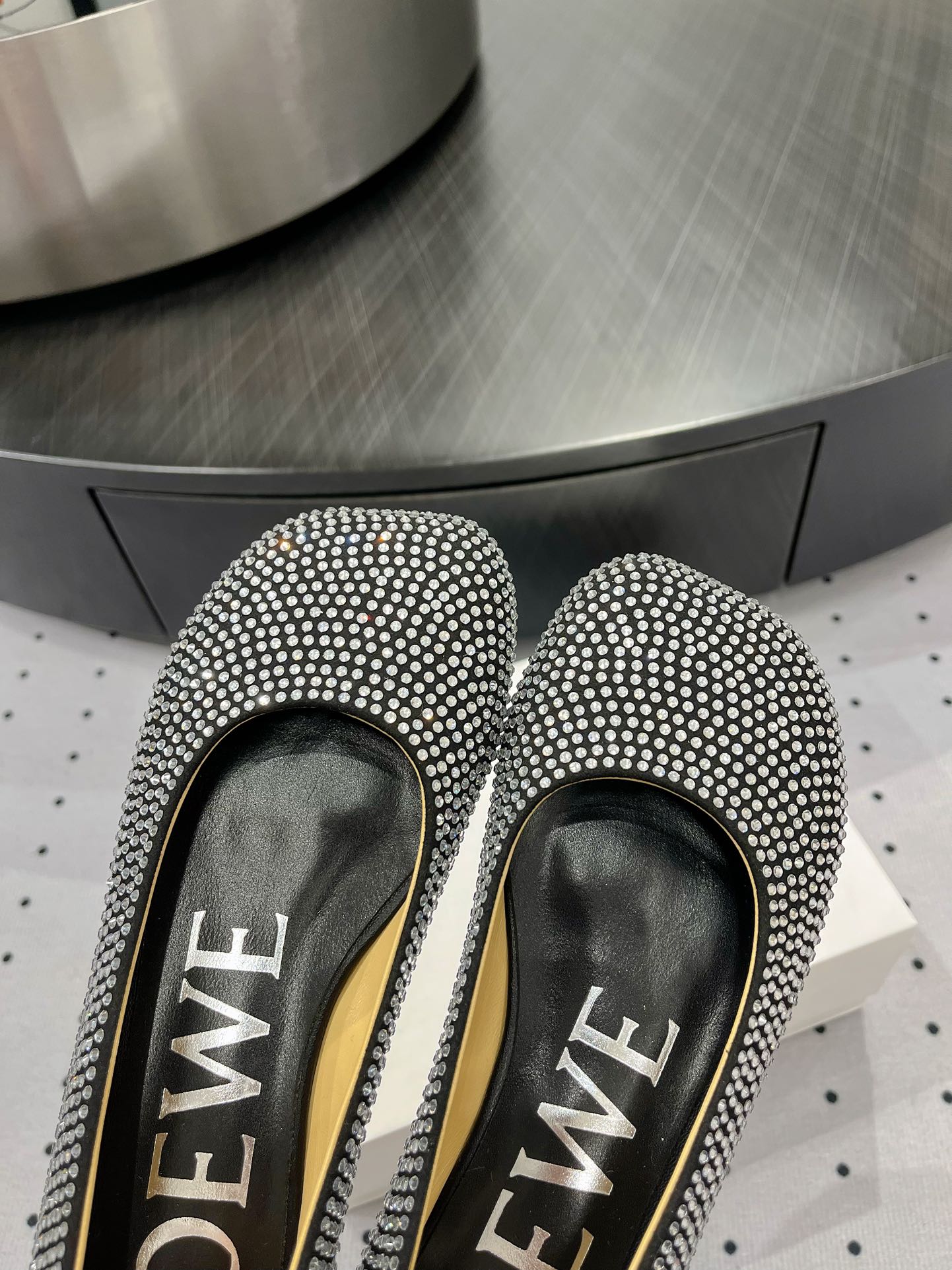 Toy ballerina in suede and allover rhinestones black