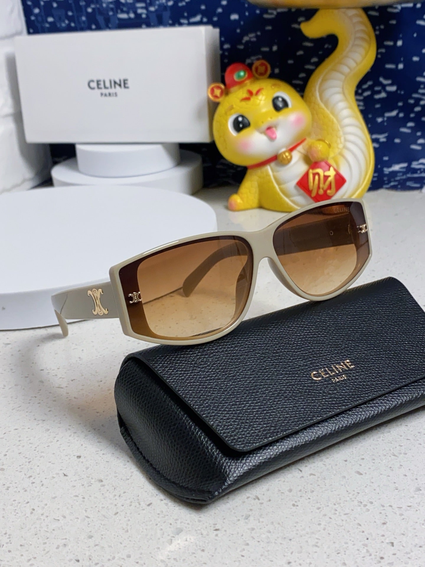 TRIOMPHE SUNGLASS 533218 IN IVORY ACETATE CAMEL LENSES