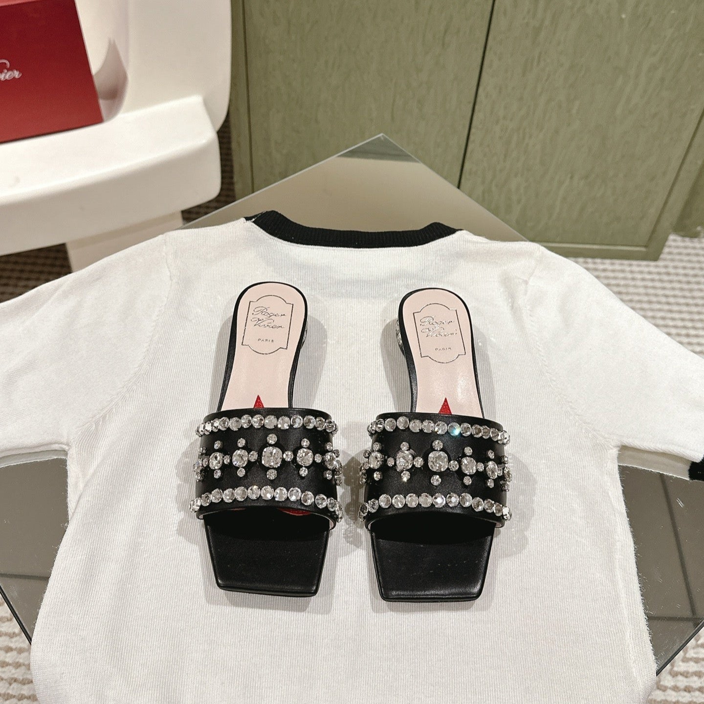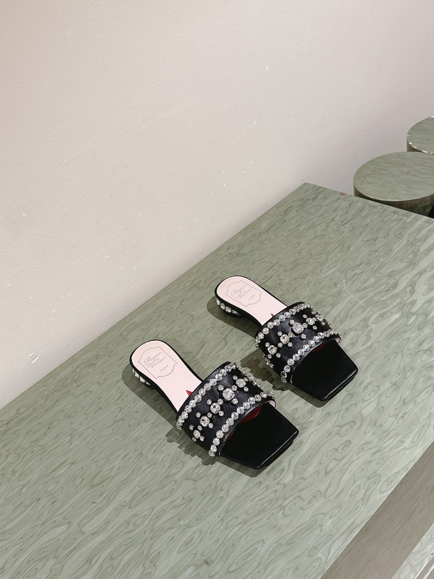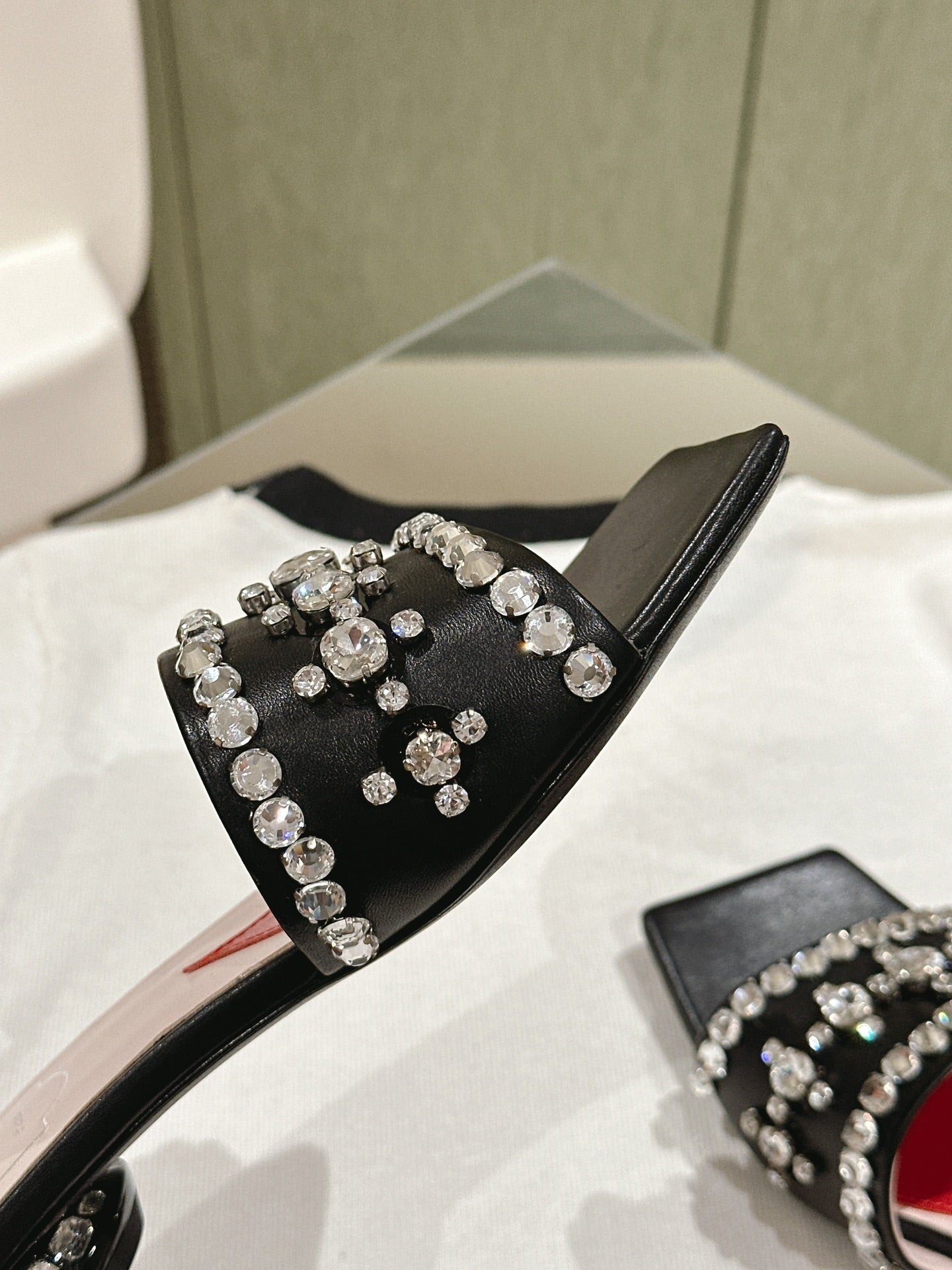 TRUMPET METALLIC MULES IN BLACK PATENT CALFSKIN WITH EMBELLISHED BUCKLE