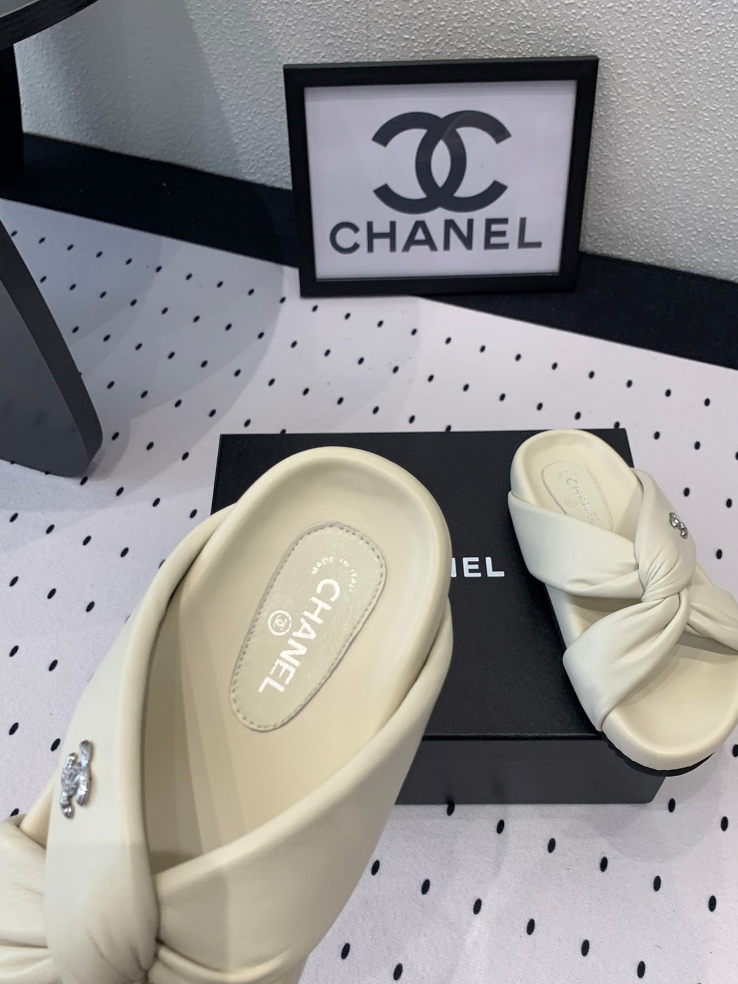 TWISTED SLIPPERS IN WHITE LAMBSKIN