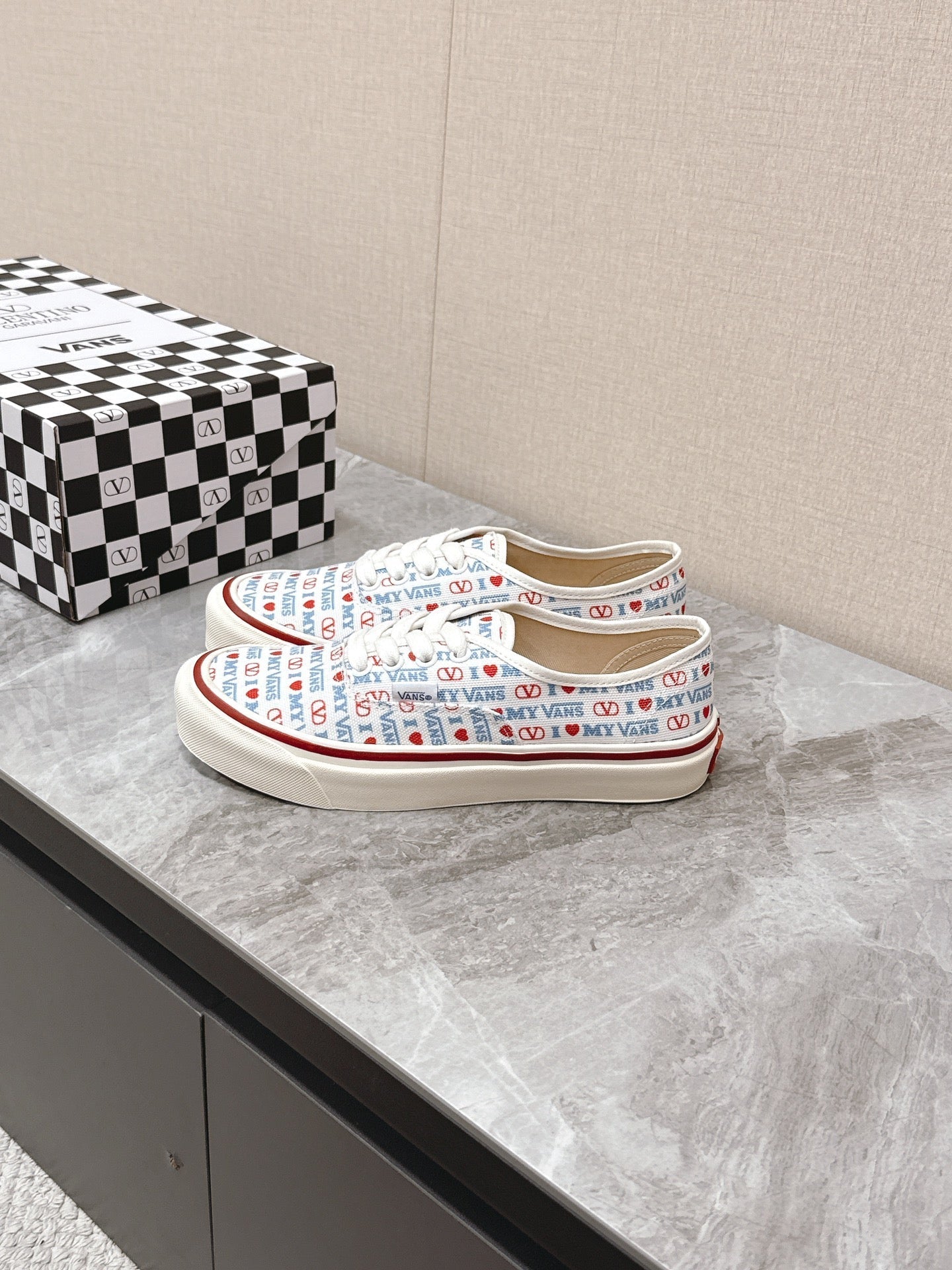 VALENTINO 25S GARAVANI X VANS SNEAKERS IN WHITE MIX BLUE CANVAS