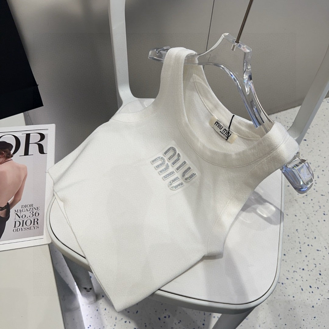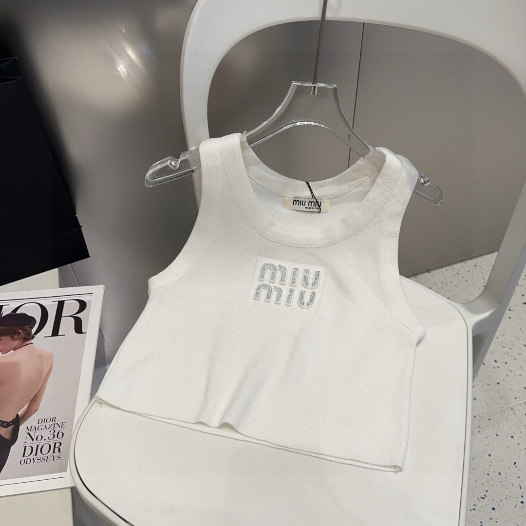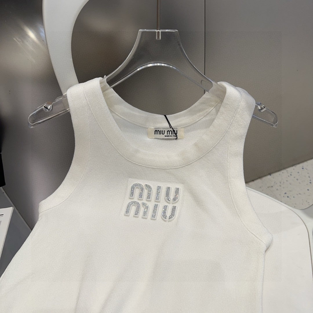 VISCOSE TANK TOP 643229 IN WHITE COTTON RIBBED KNIT WITH EMBELLISHED LOGO