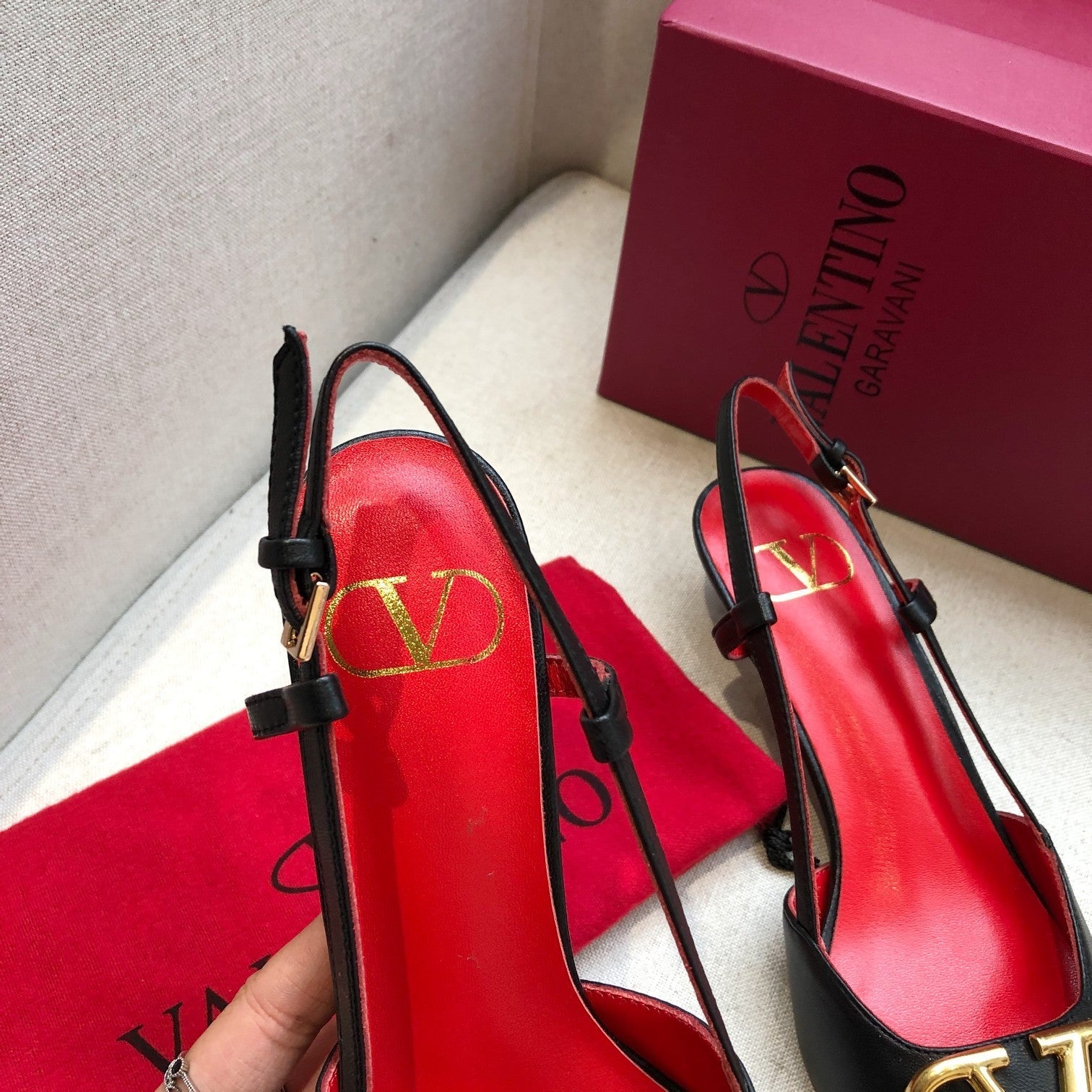 VLOGO SIGNATURE BLACK CALFSKIN HIGH SLINGBACK PUMP 4 CM WITH GOLD LOGO