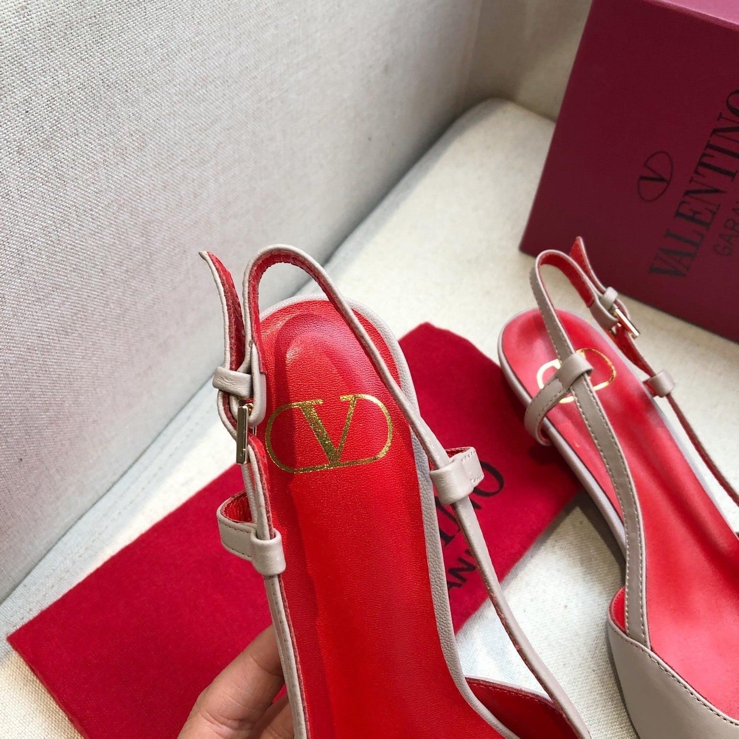 VLOGO SIGNATURE PALE PINK CALFSKIN HIGH SLINGBACK PUMP 4 CM WITH GOLD LOGO