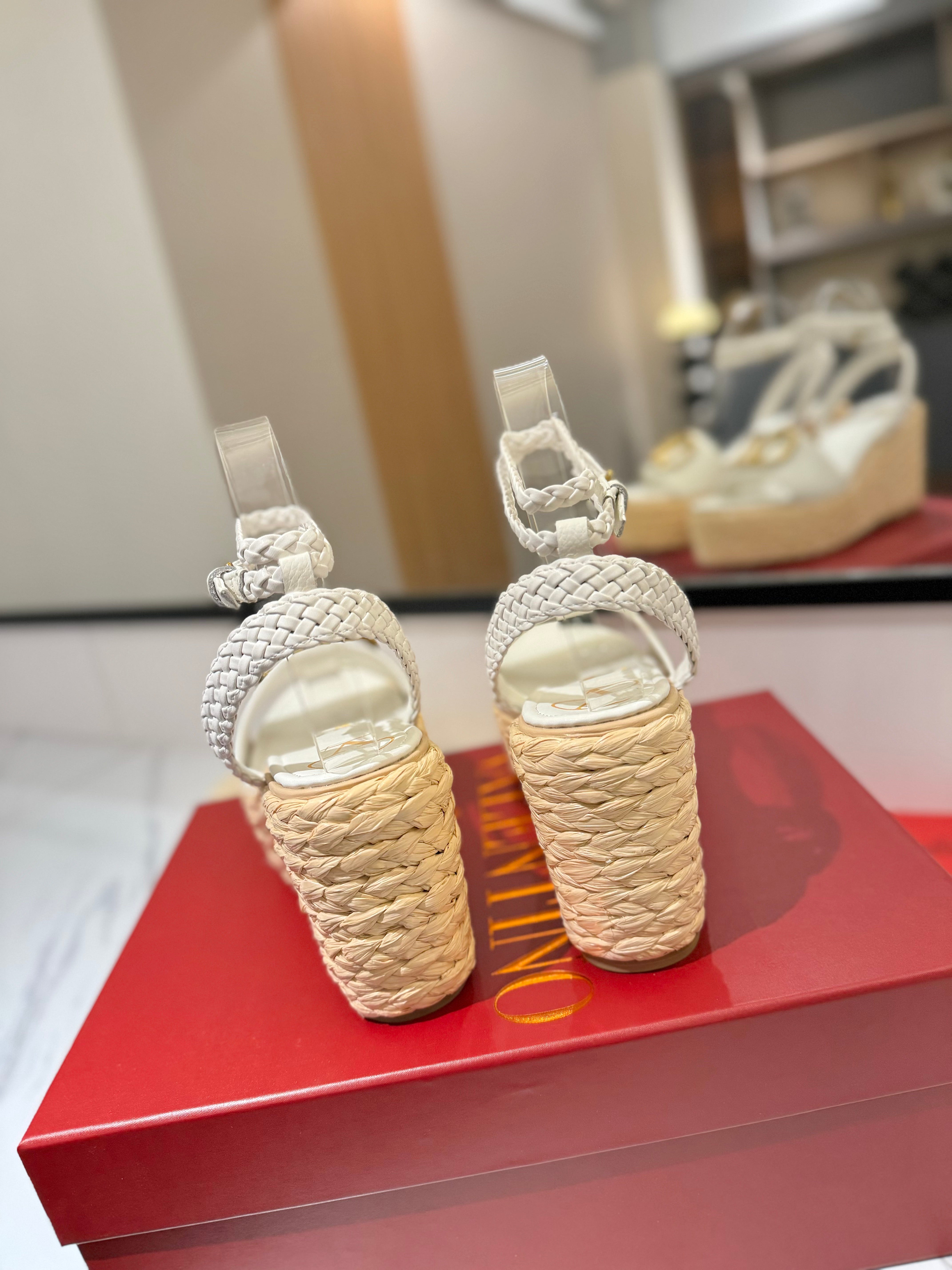 VLTN ESPADRILLE WEDGE SANDALS 25S 90 MM IN WHITE LAMBSKIN STYLE 3