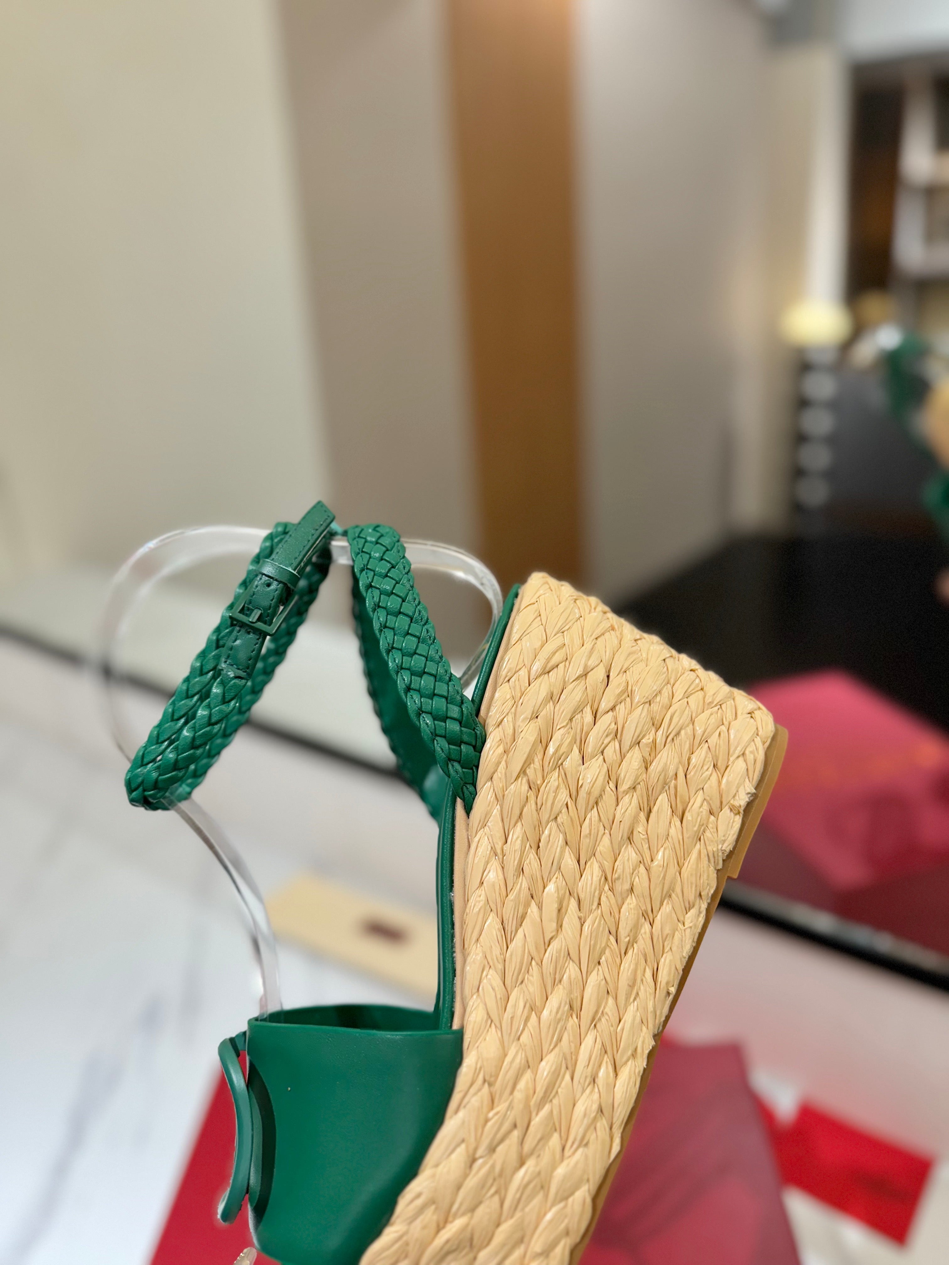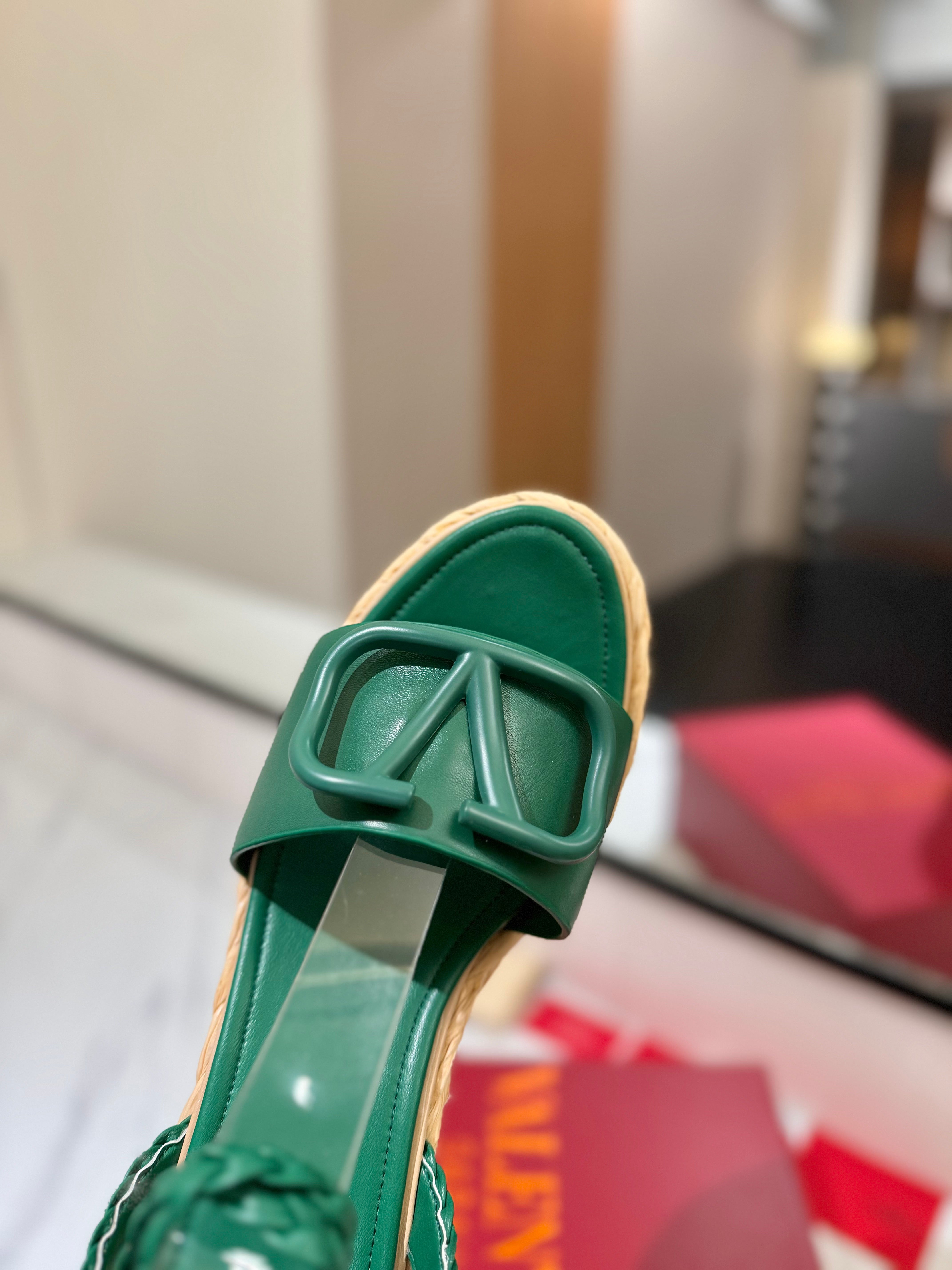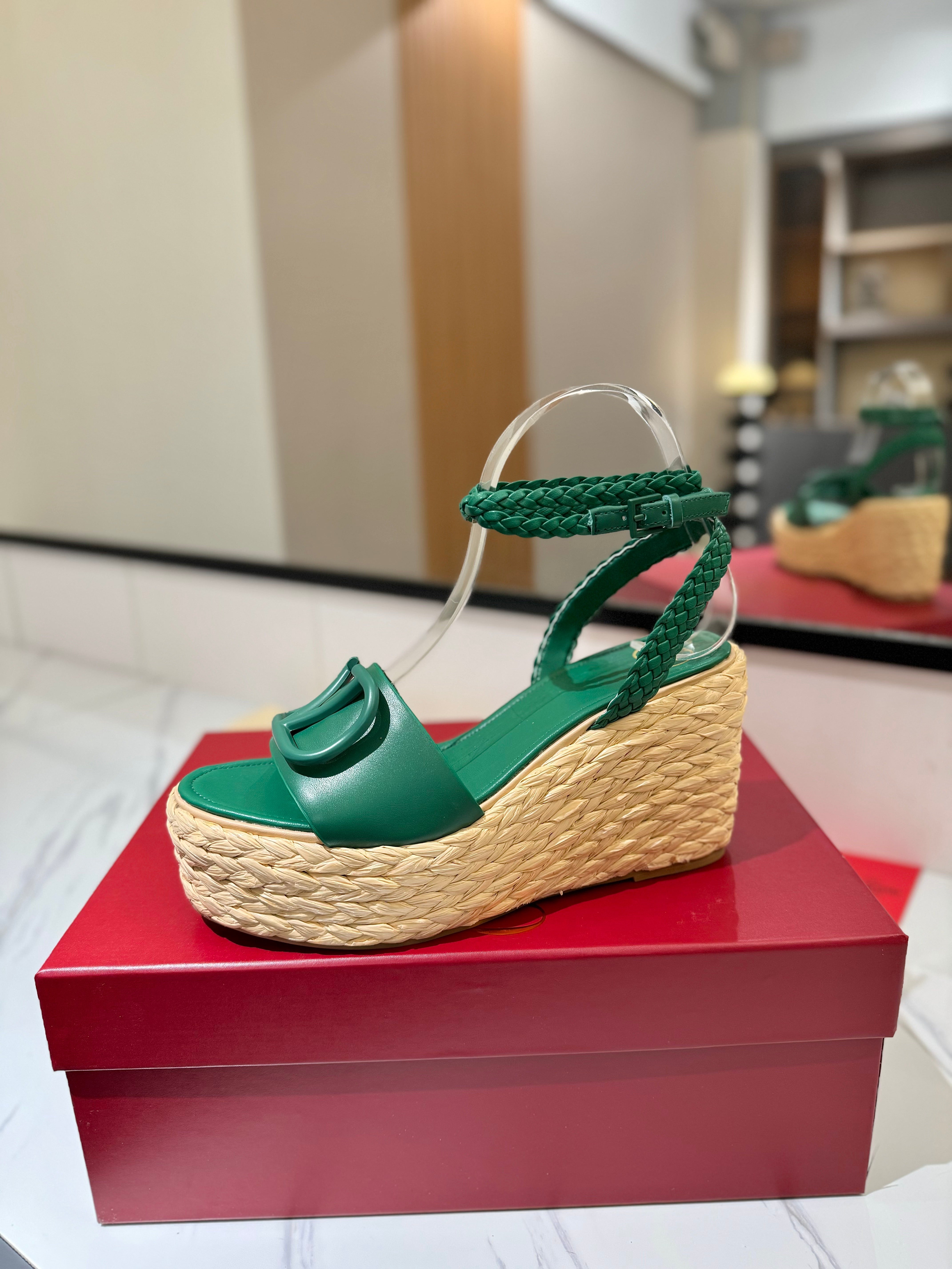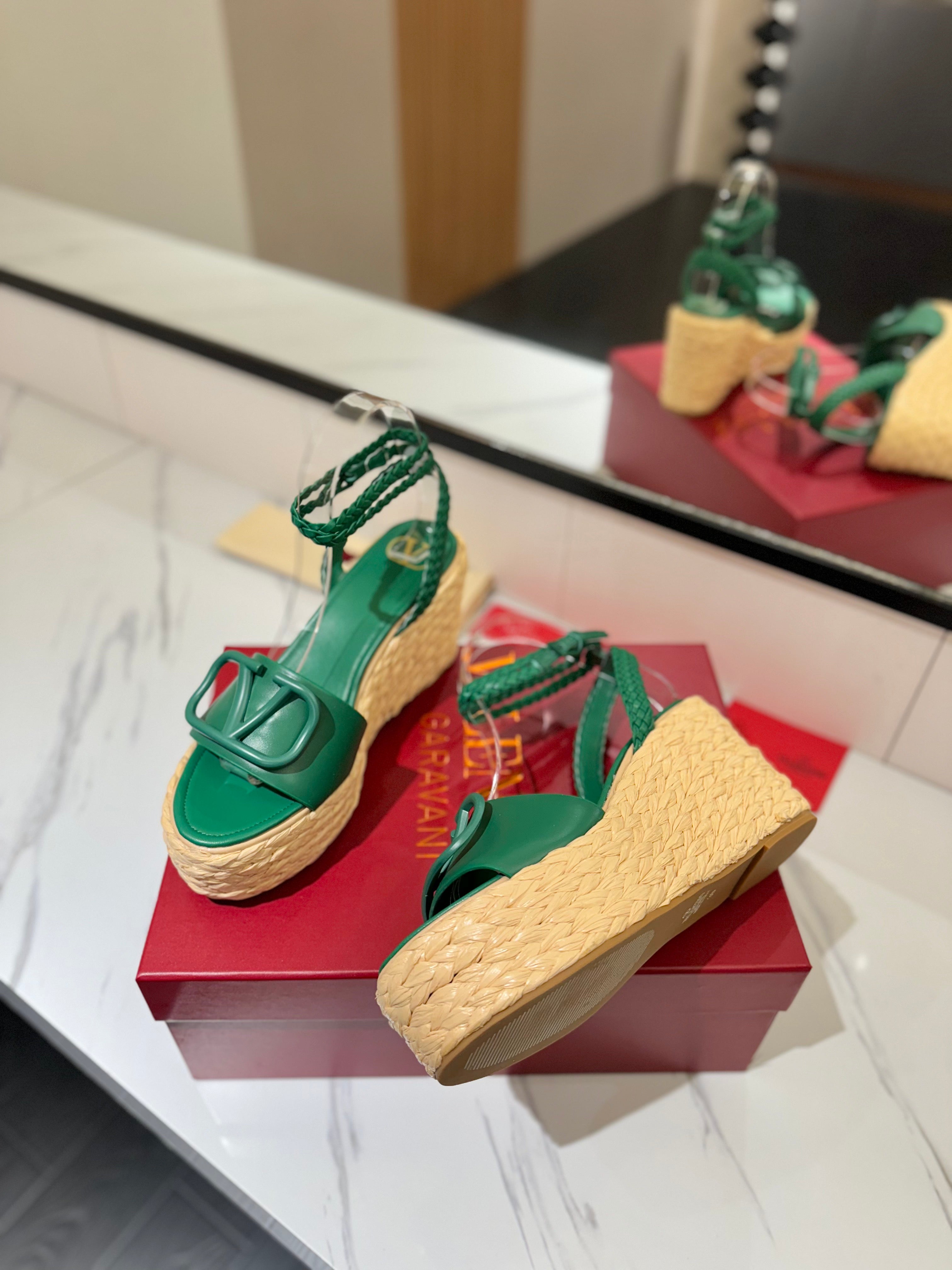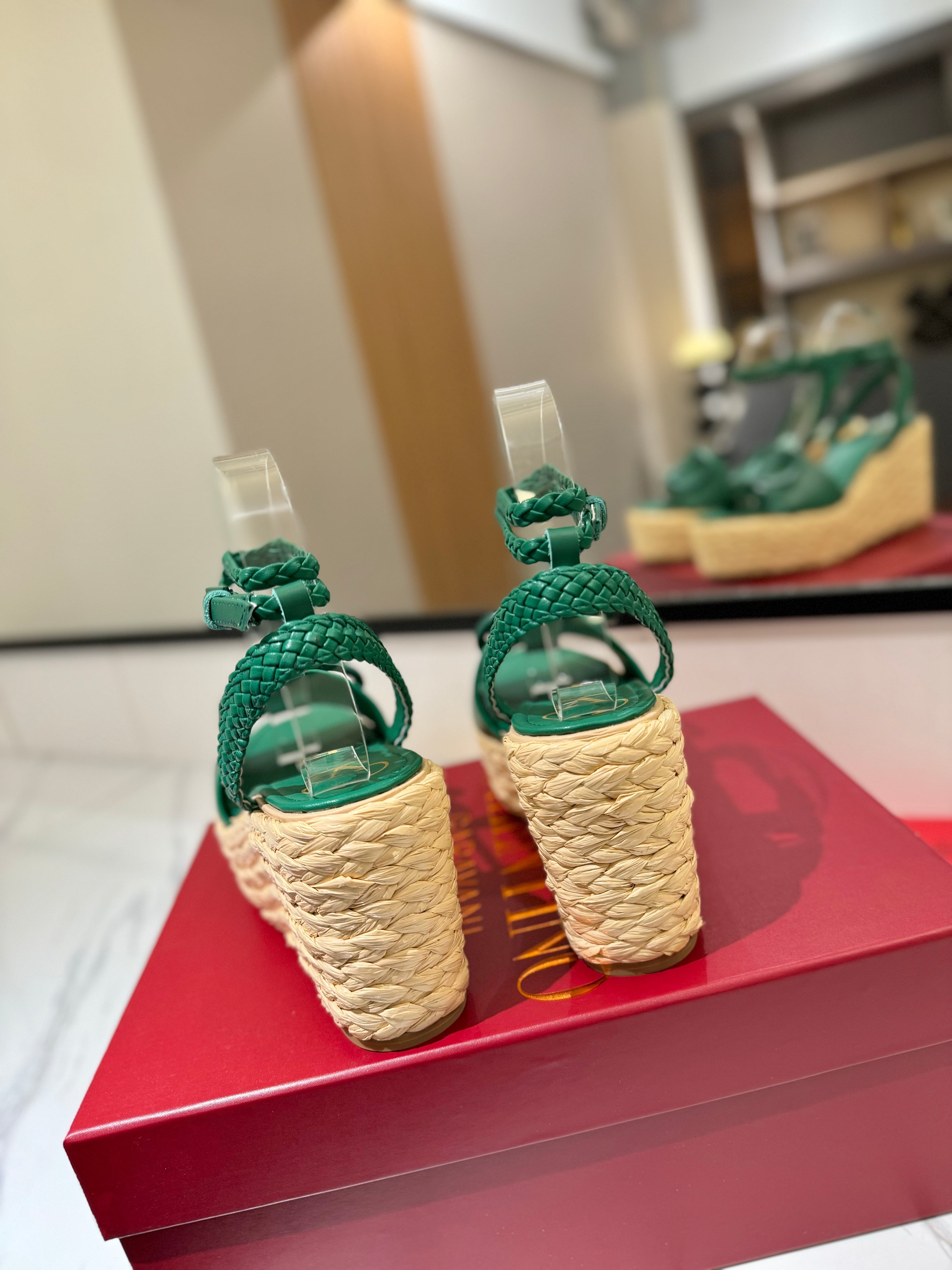 VLTN ESPADRILLE WEDGE SANDALS 25S 90 MM IN DARK GREEN LAMBSKIN STYLE 6