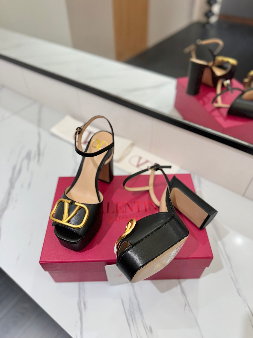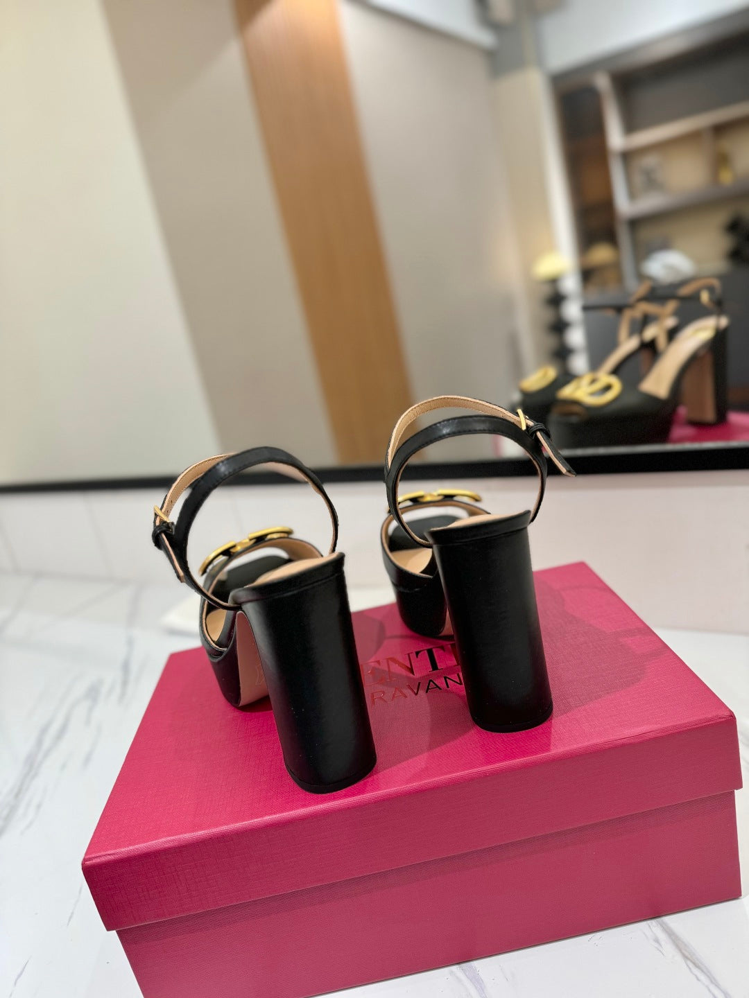VLTN HIGH SANDAL 25S 115 MM IN BLACK LAMBSKIN WITH GOLD HARDWARE