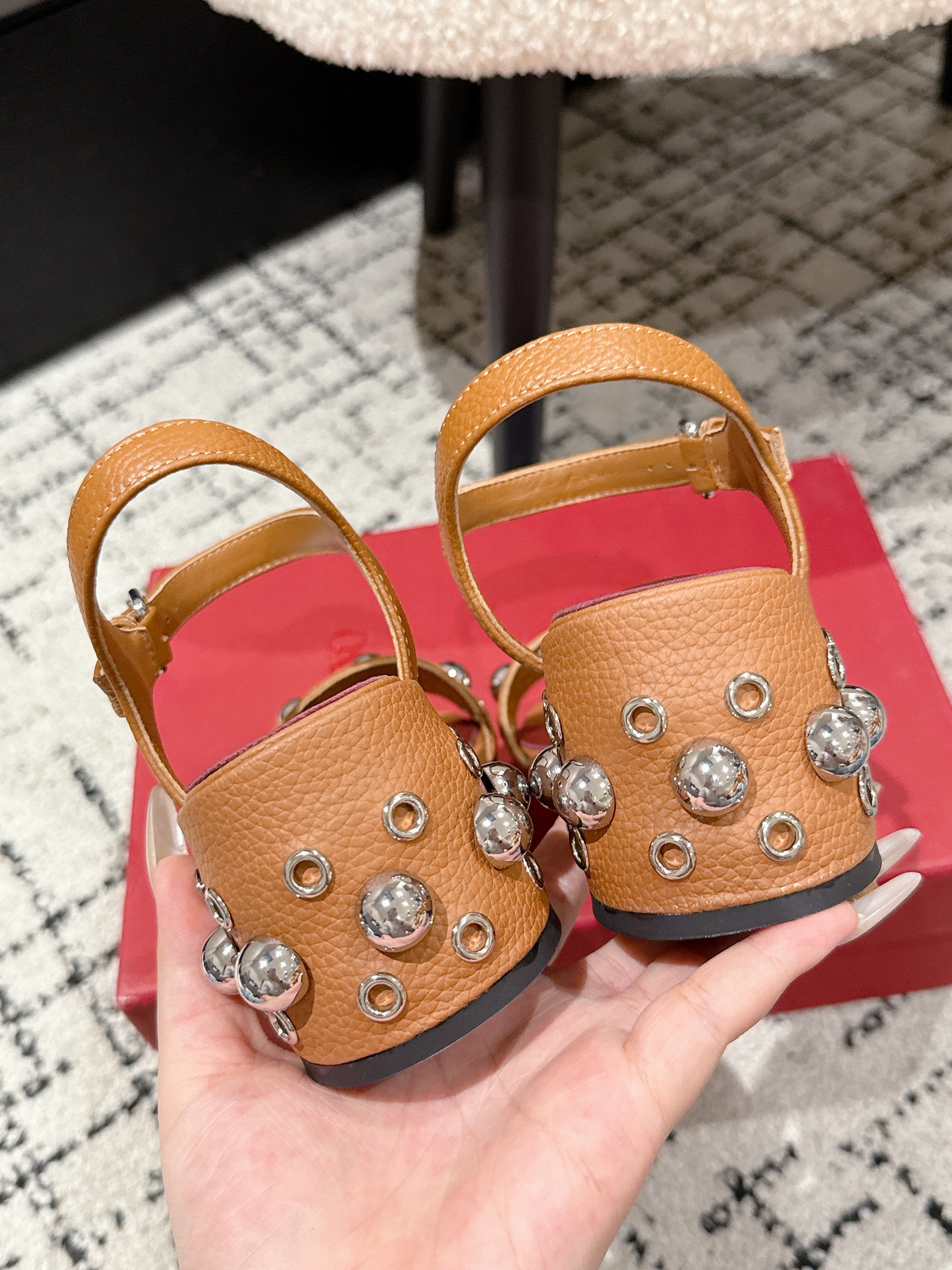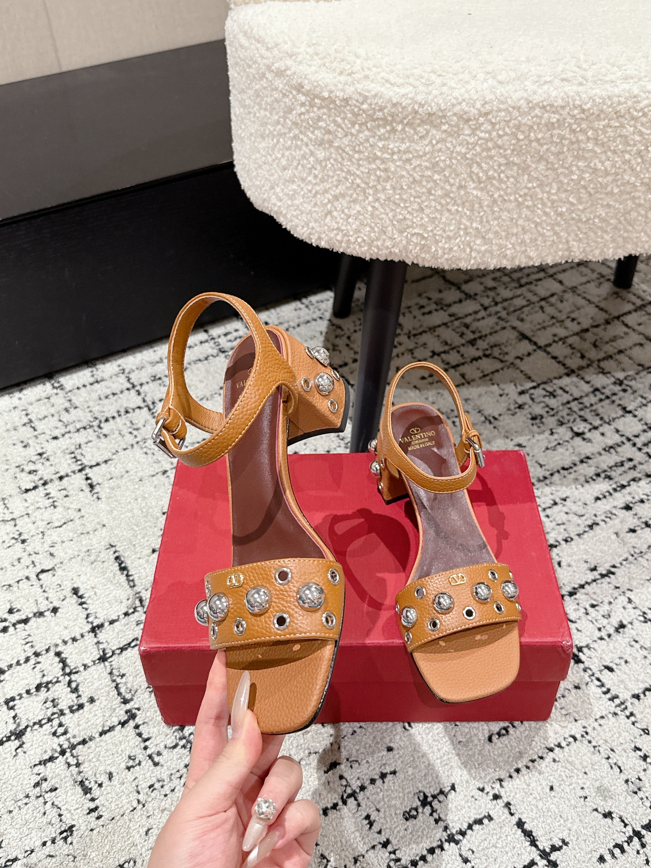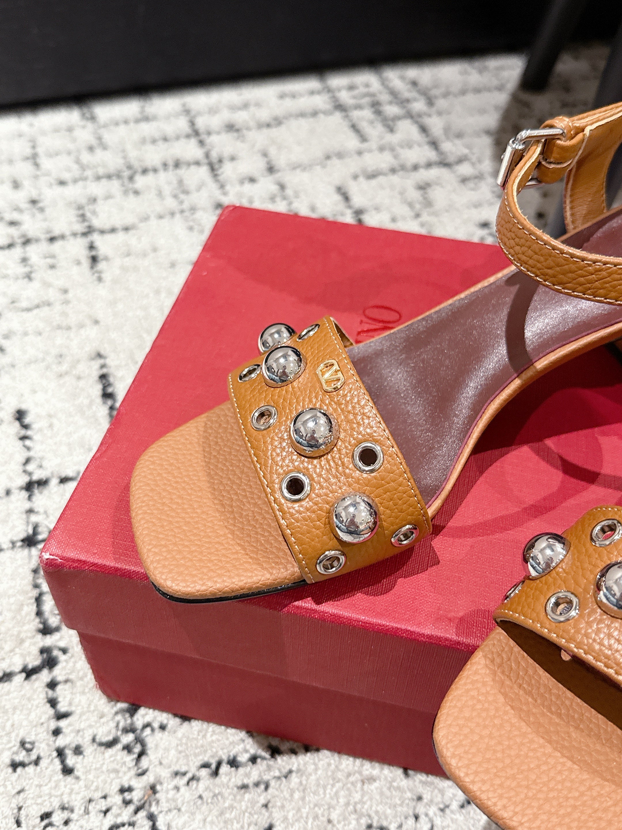VLTN STUDDED BLOCK HEEL SANDALS 25S 60 MM IN BROWN LAMBSKIN