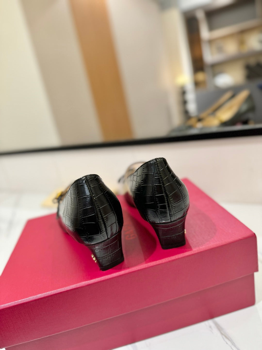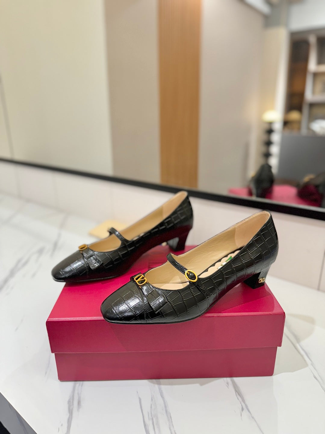 VLTN VLOGO SIGNATURE ROUND-TOE HEELS 25S IN BLACK LAMBSKIN SNAKE-EMBOSSED