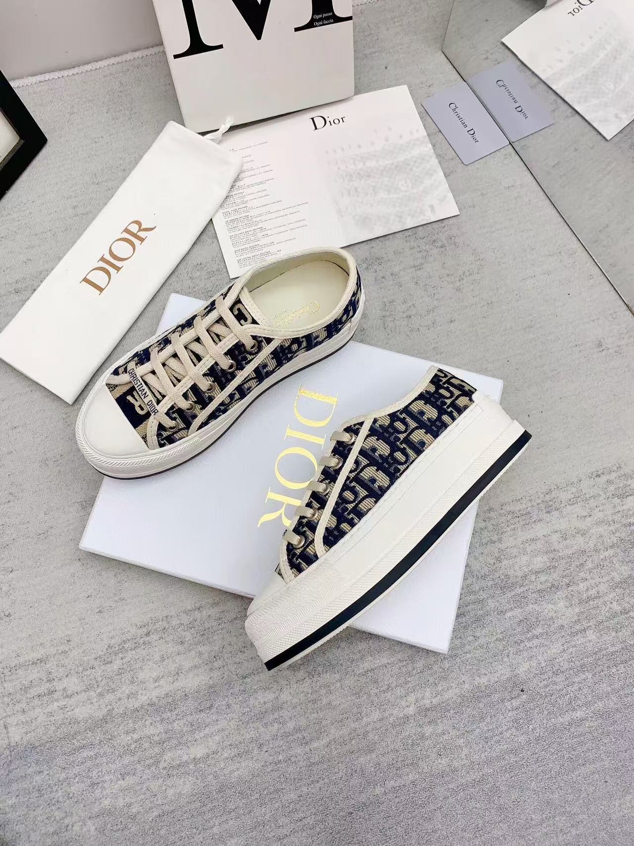 WALKN 45 BEIGE BLUE OBLIQUE EMBROI-DERY CANVAS