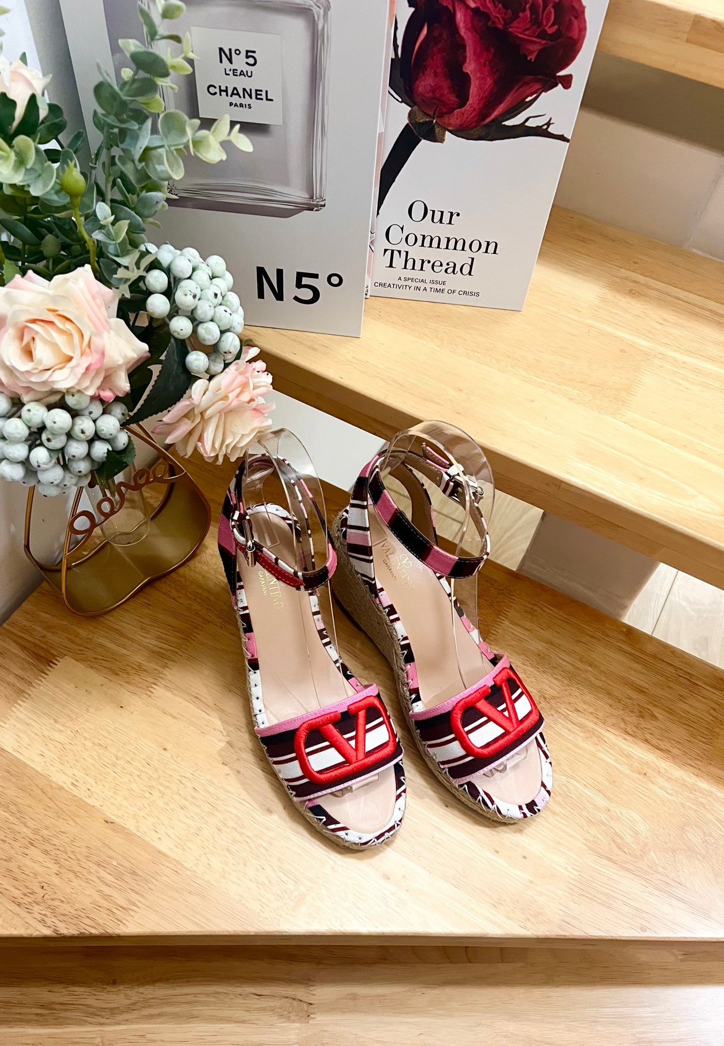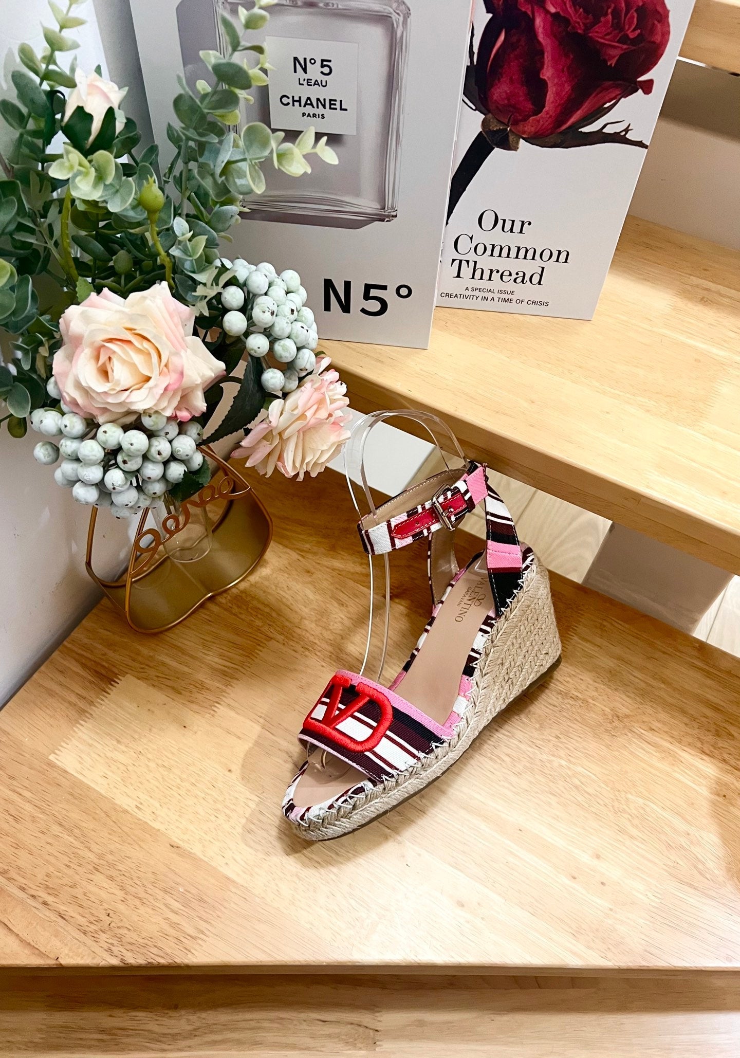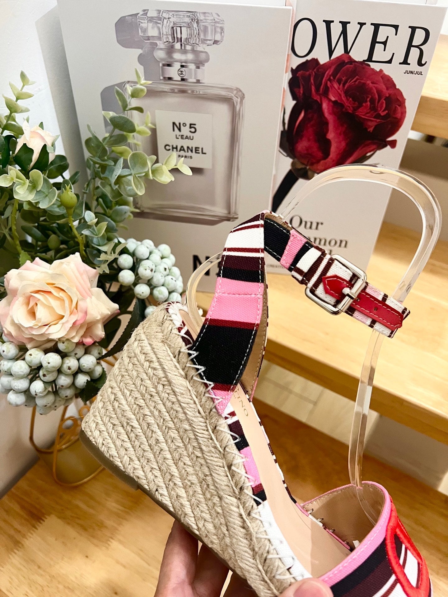 WEDGE SANDALS IN COLORFUL CANVAS 85 MM