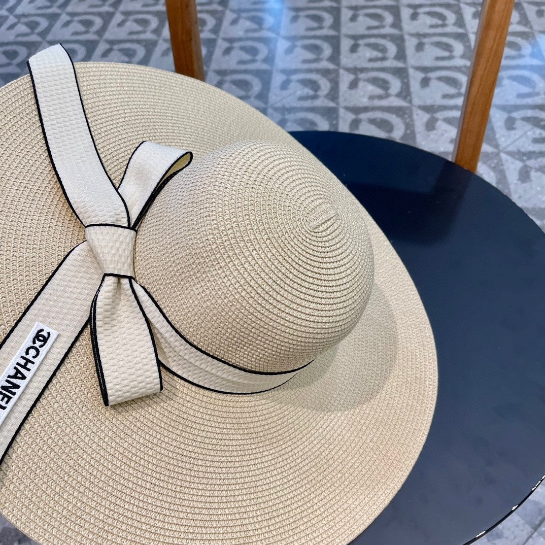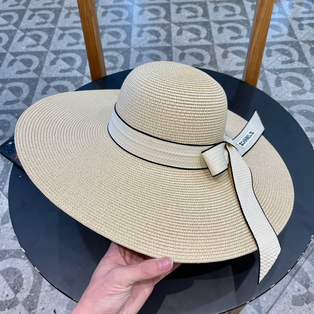 WIDE BRIM STRAW HAT WITH BOW BEIGE 672706