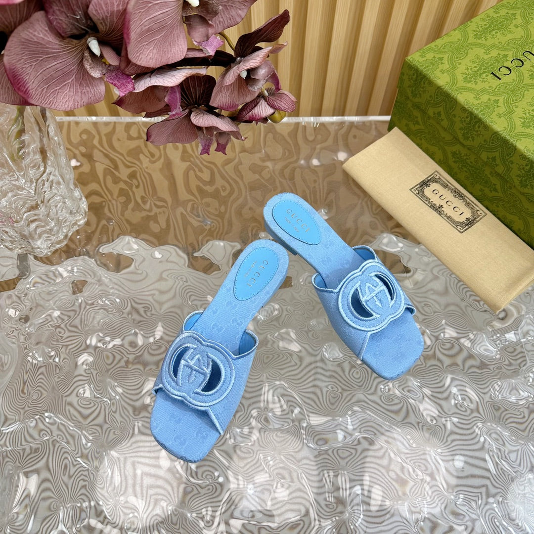 WOMEN'S INTERLOCKING G SLIDE SANDAL SKY CANVAS