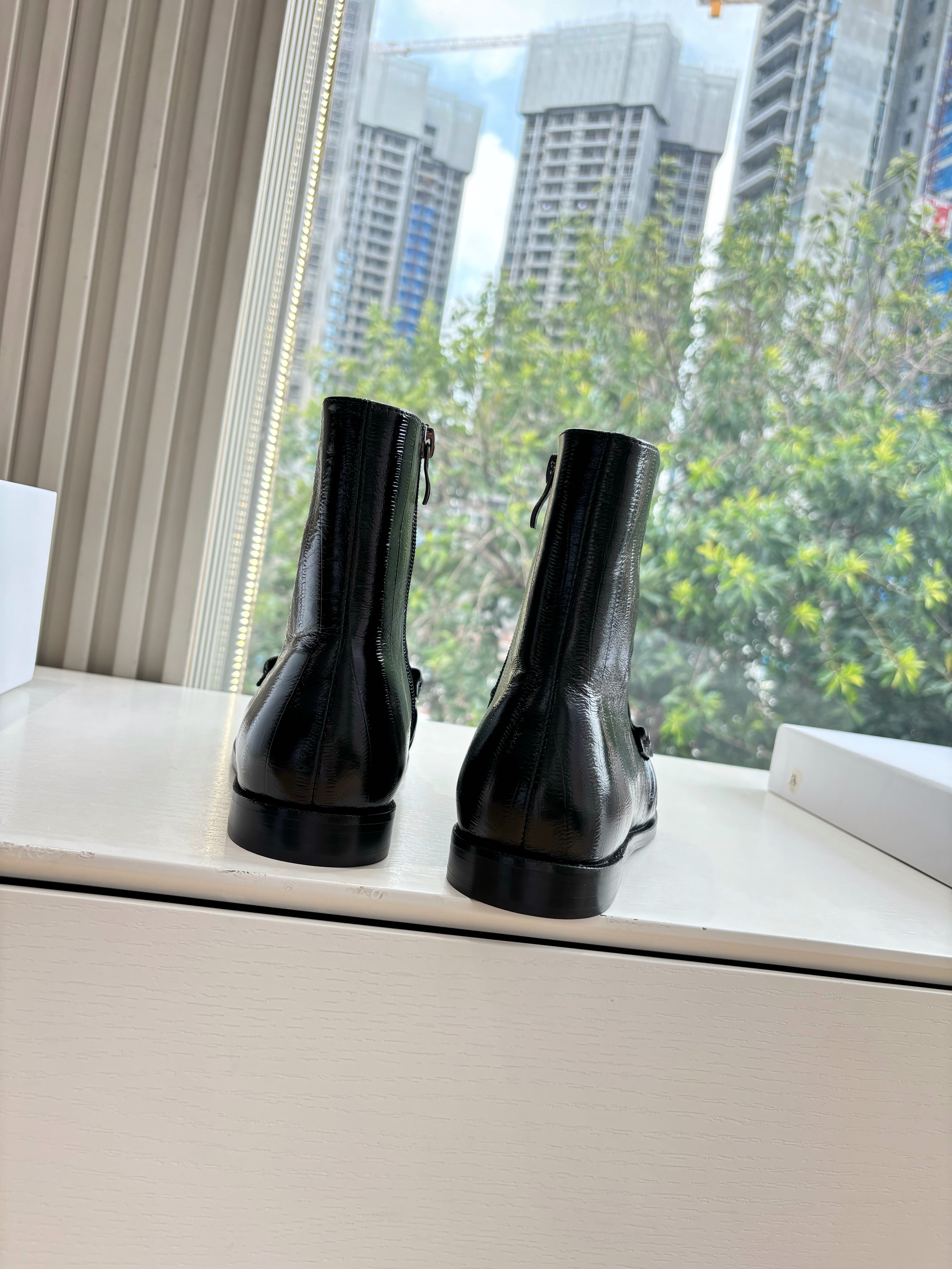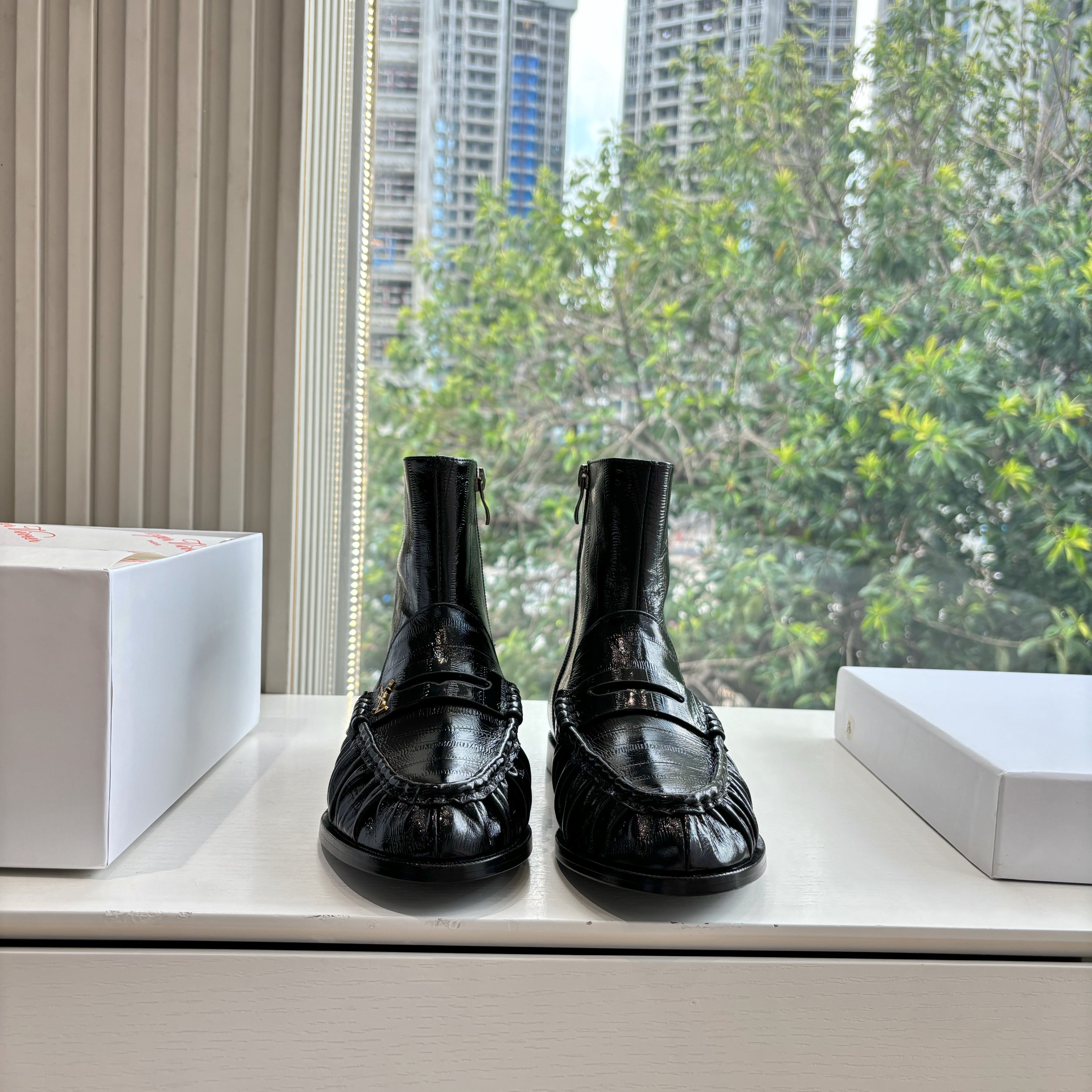 YSL 25S ANKLE FLAT BOOTS IN BLACK EMBOSSED LAMBSKIN WITH SIDE ZIPPER