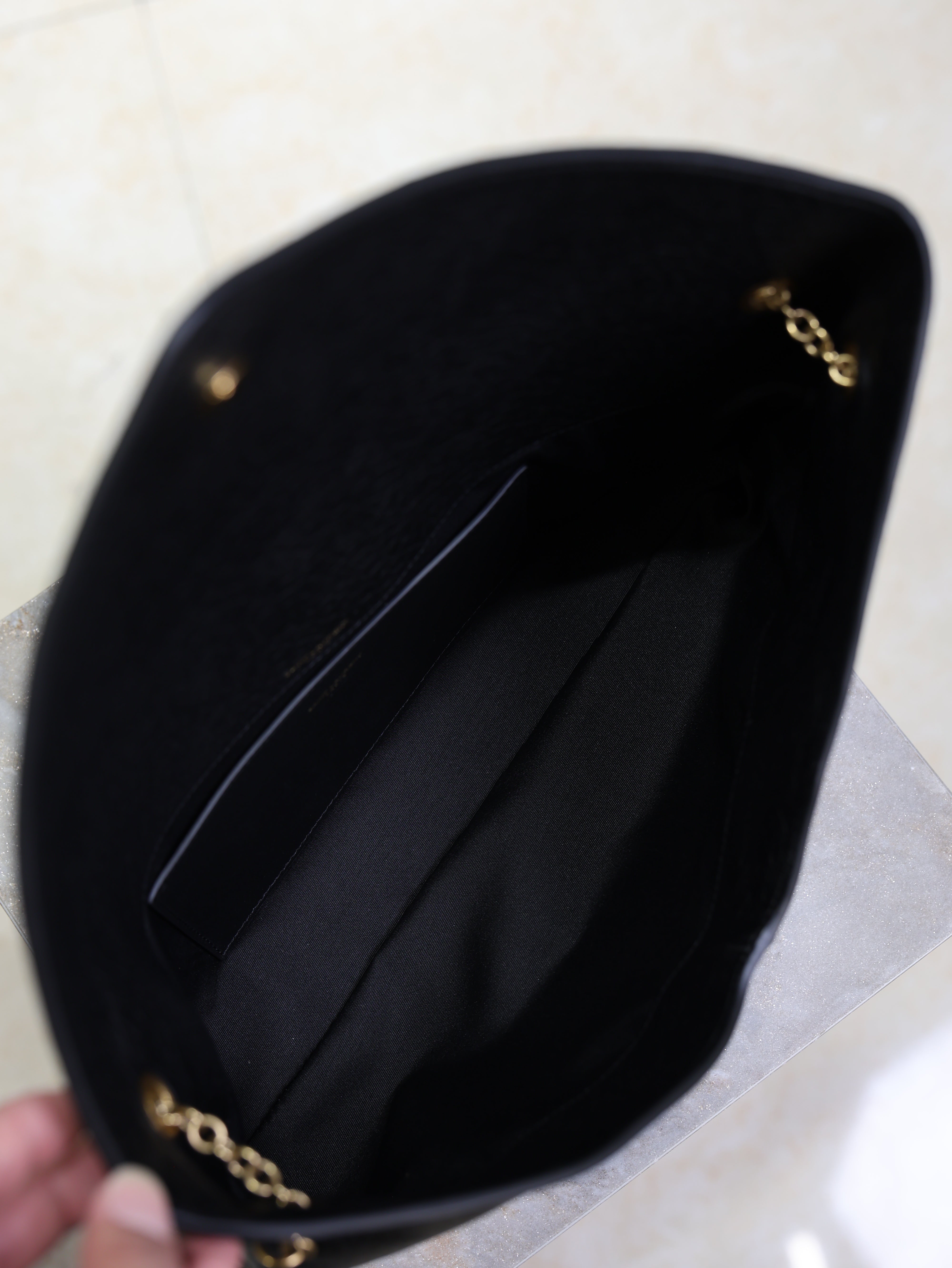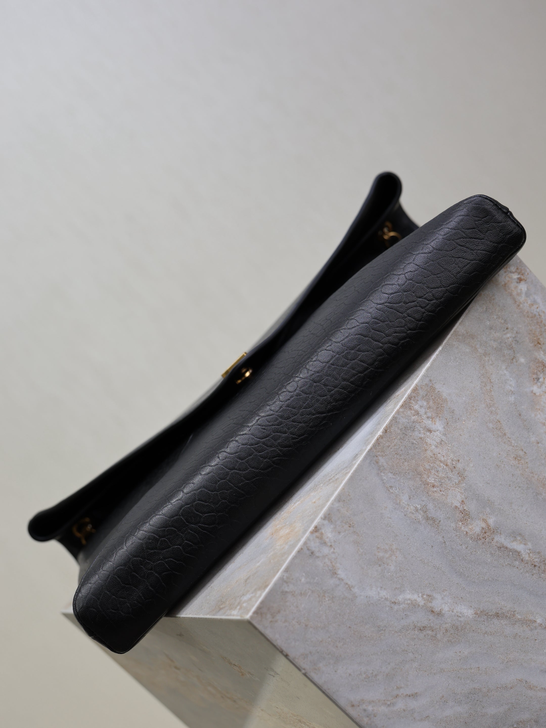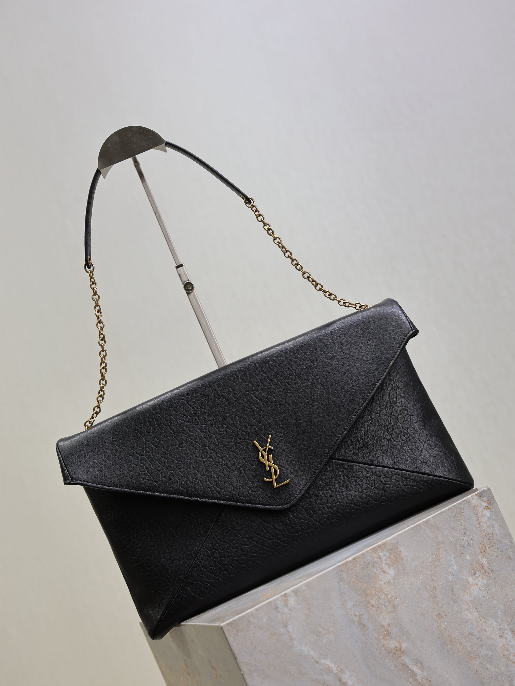 YSL 25S CASSANDRE ENVELOPE MESSENGER 35 IN BLACK LAMBSKIN GOLD HARDWARE
