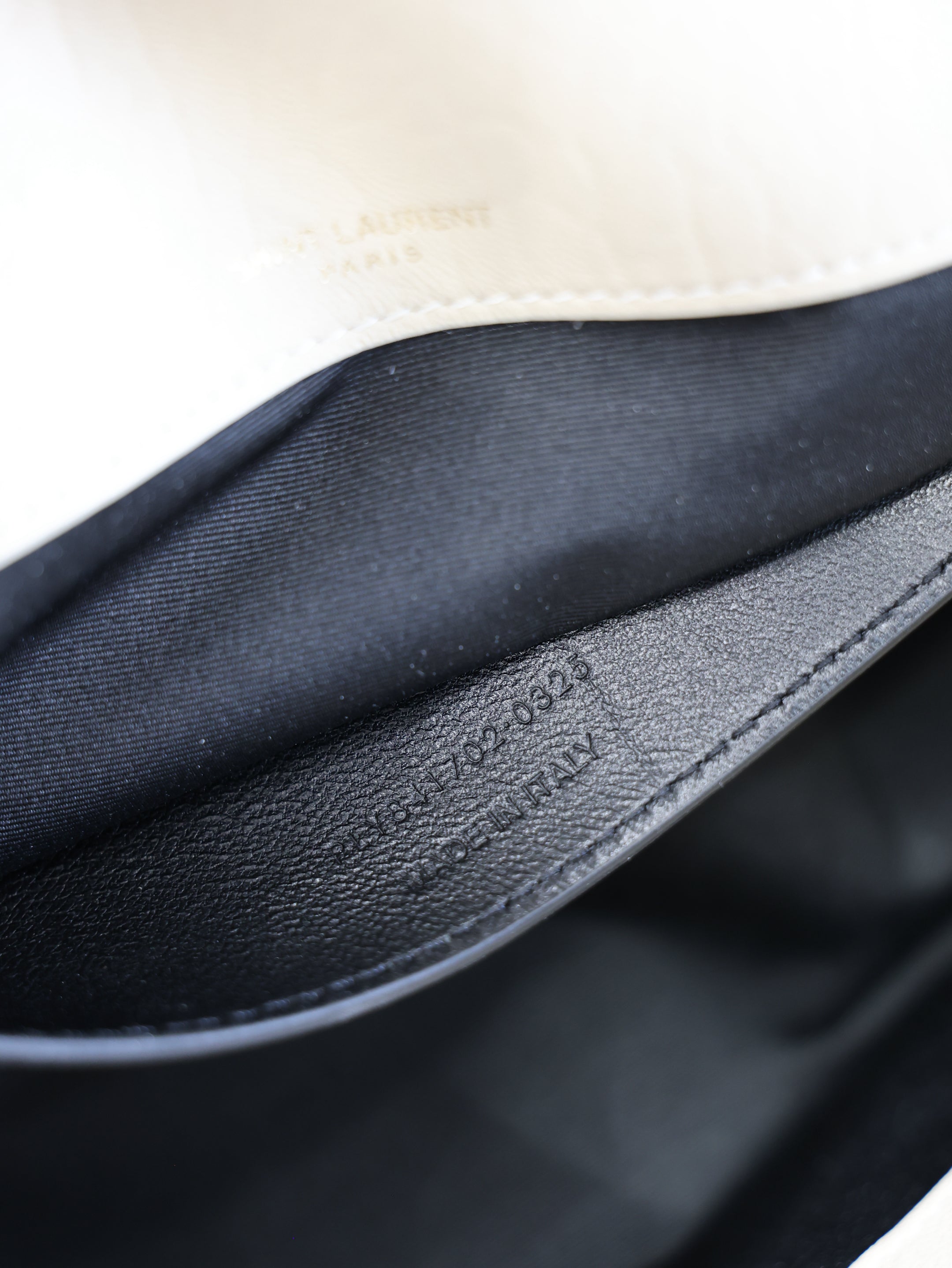 YSL 25S CASSANDRE ENVELOPE MESSENGER 35 IN BLANC VINTAGE LAMBSKIN GOLD HARDWARE