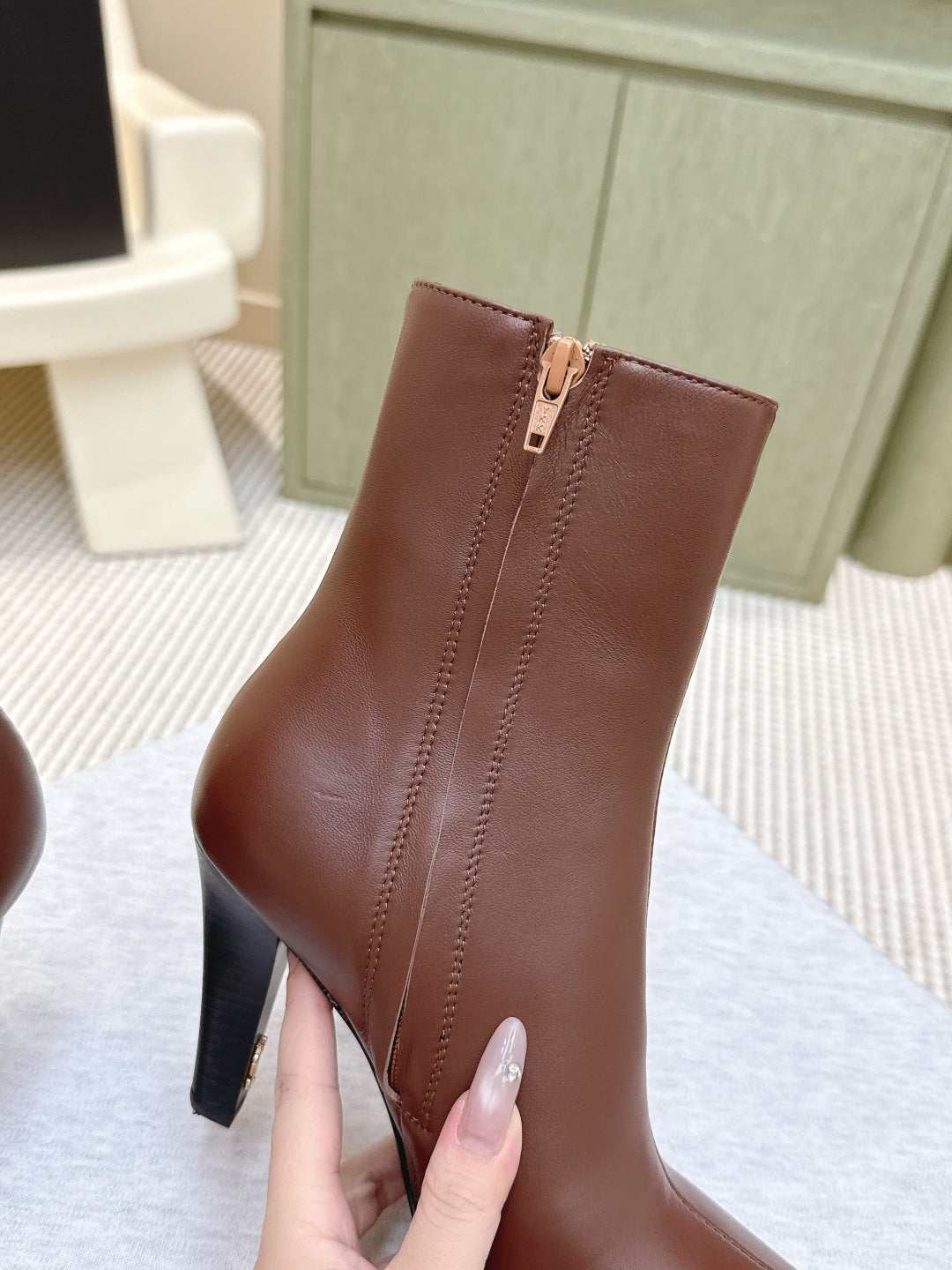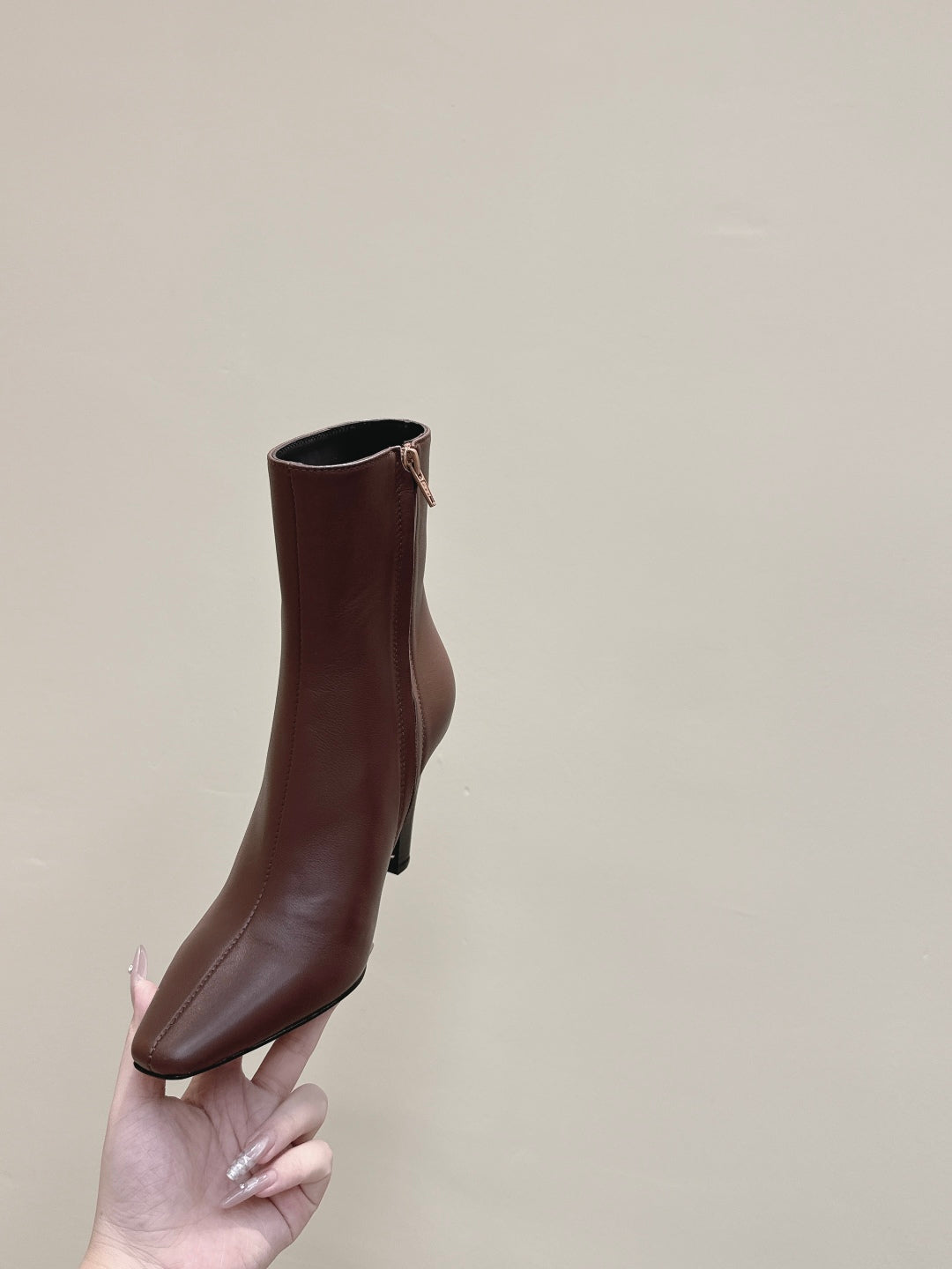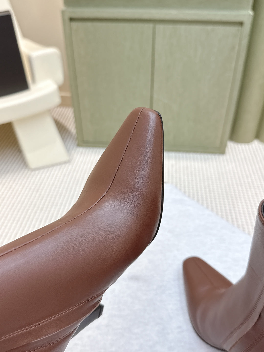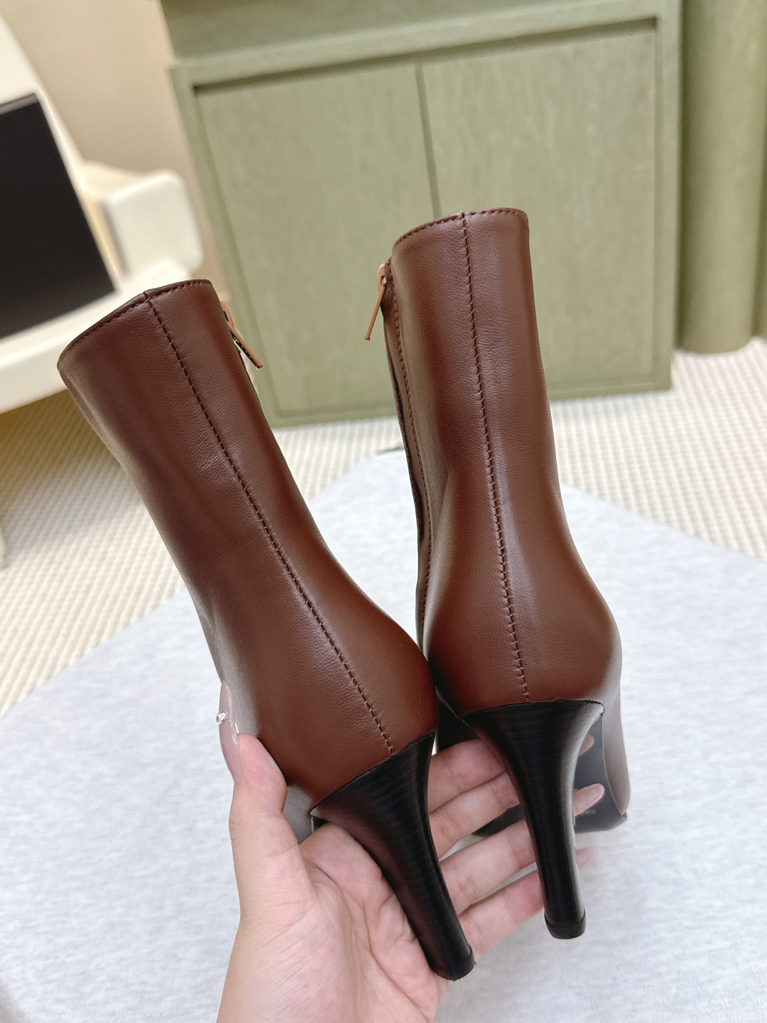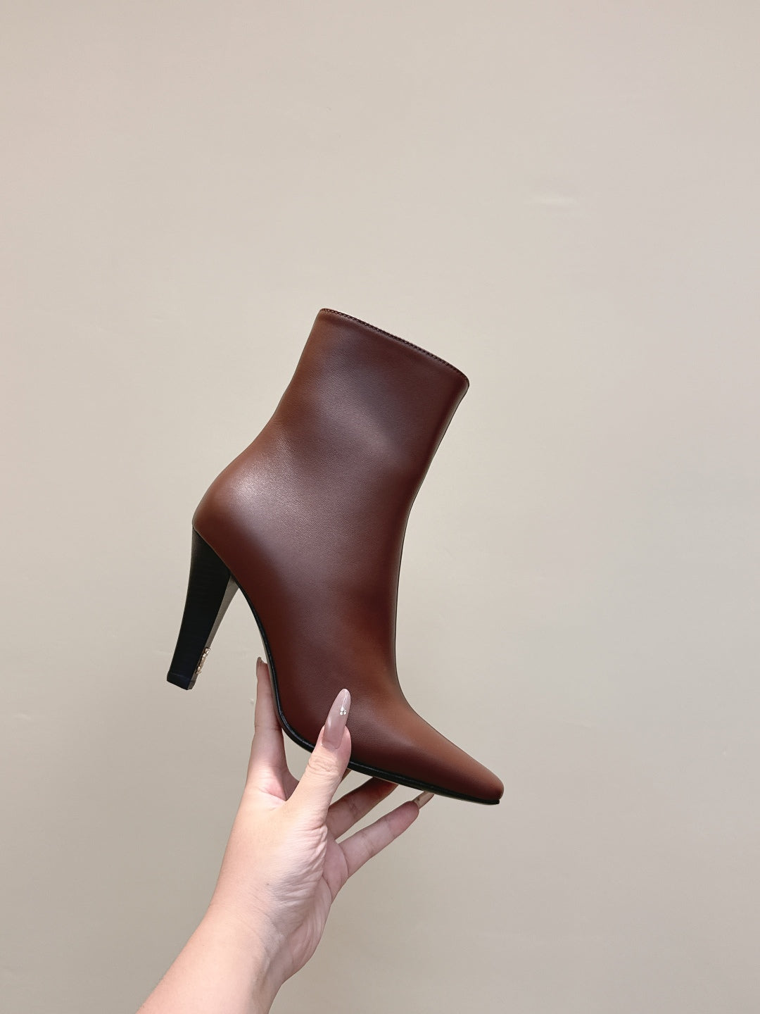 YSL 25S HEELED ANKLE BOOTS 75 MM IN BROWN LAMBSKIN