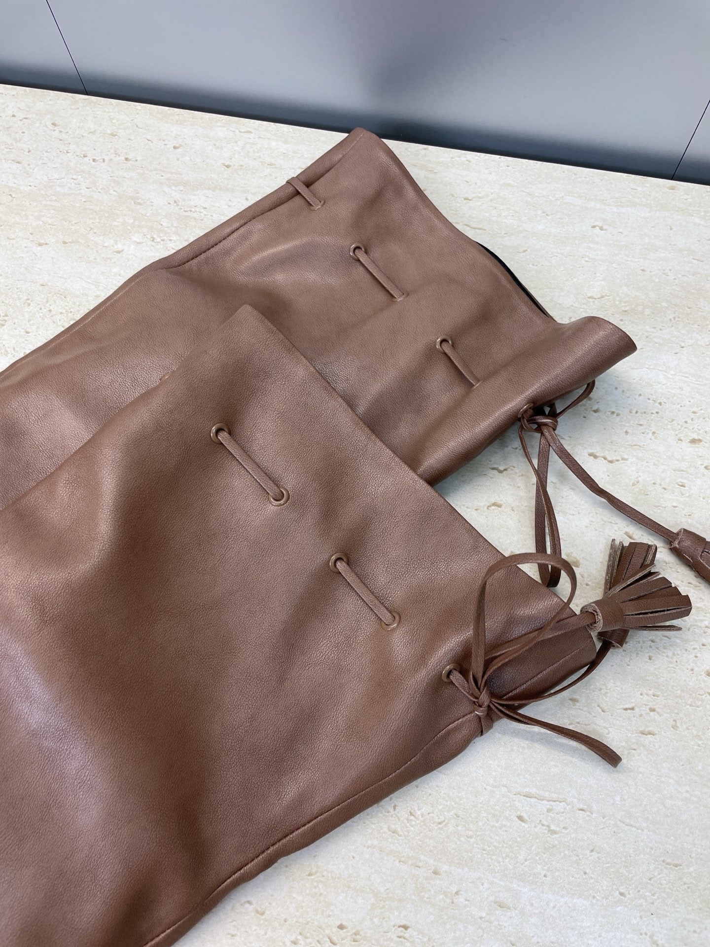 YSL 25S HIGH‑HEEL FRINGED MARTIN BOOTS 90 MM IN CHESTNUT BROWN LAMBSKIN