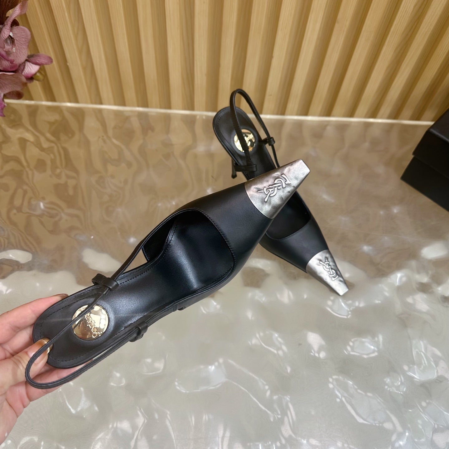 YSL 25S HIGH-HEEL SLINGBACKS 105 MM IN BLACK LAMBSKIN AND SILVER HARDWARE