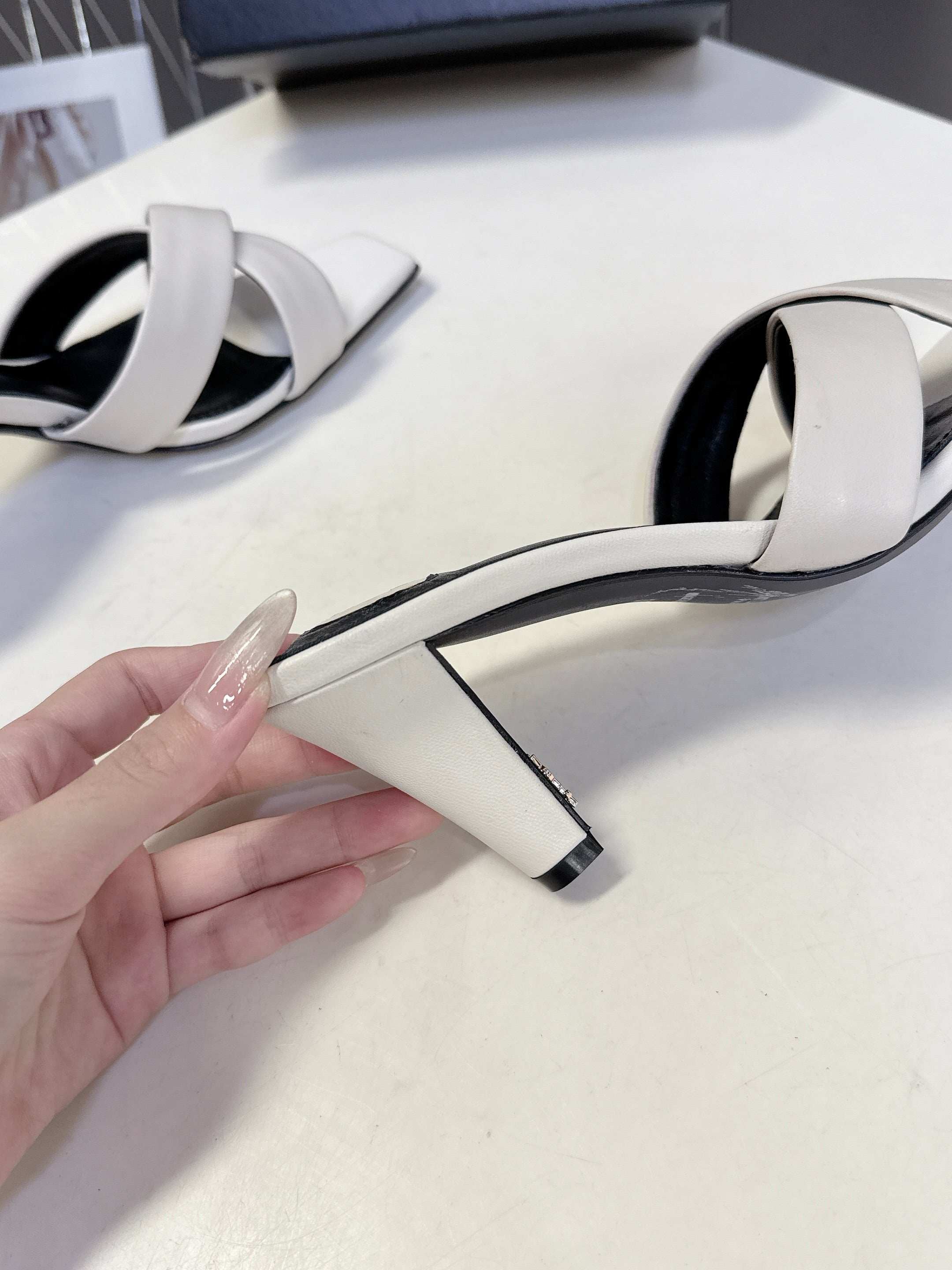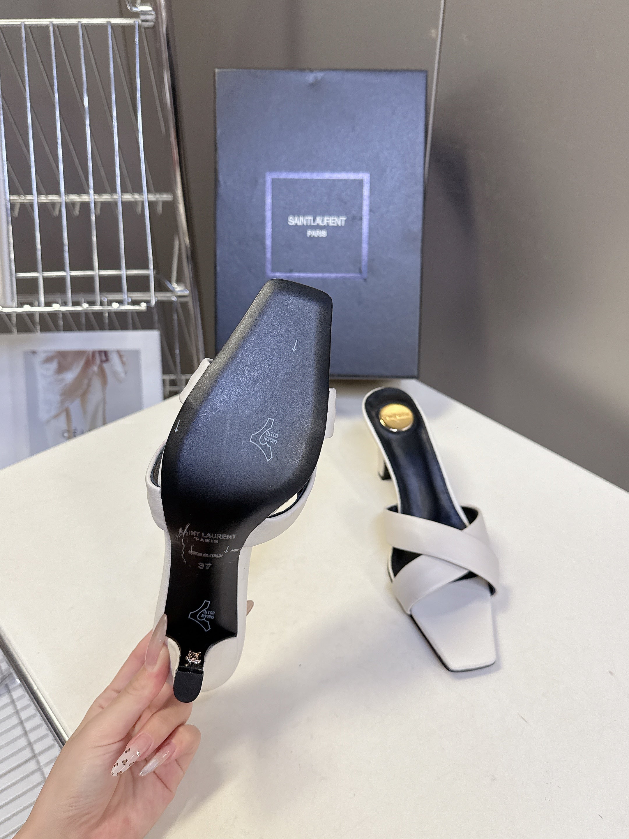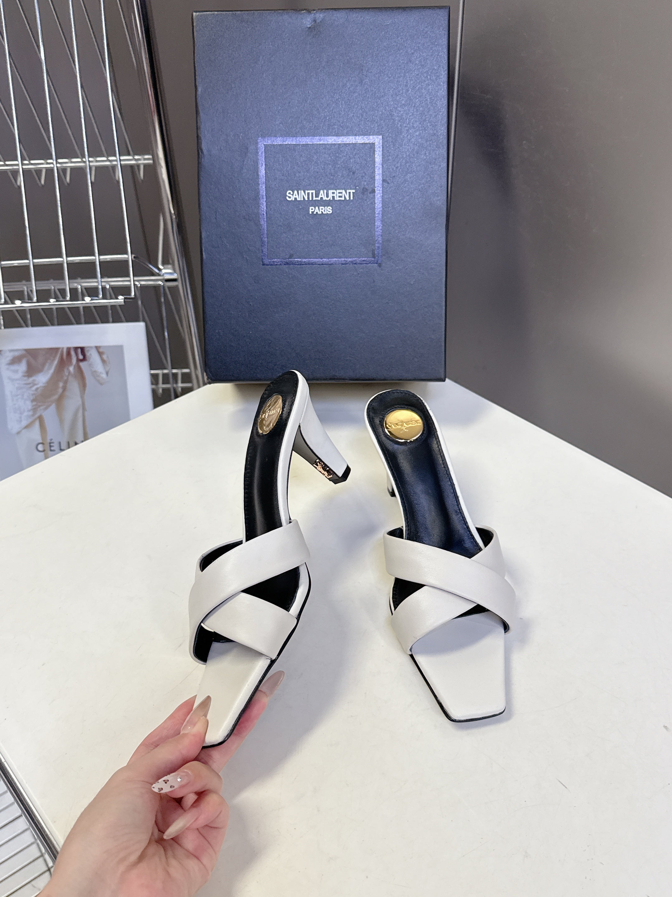 YSL 25S JILL MULES 75MM IN WHITE SMOOTH CALFSKIN