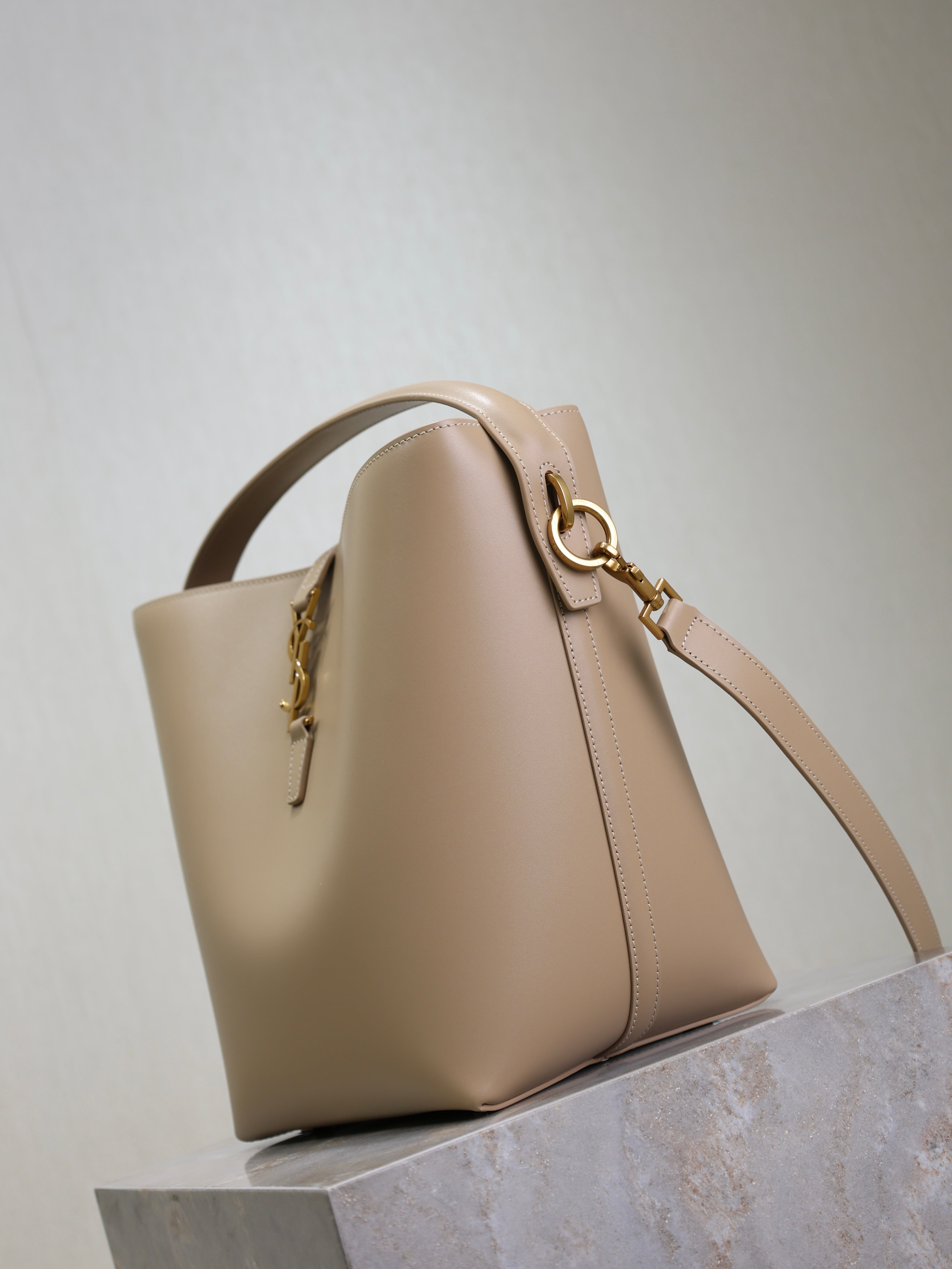 YSL 25S LE 5 À 7 BUCKET 26 IN NUDE CALFSKIN GOLD HARDWARE